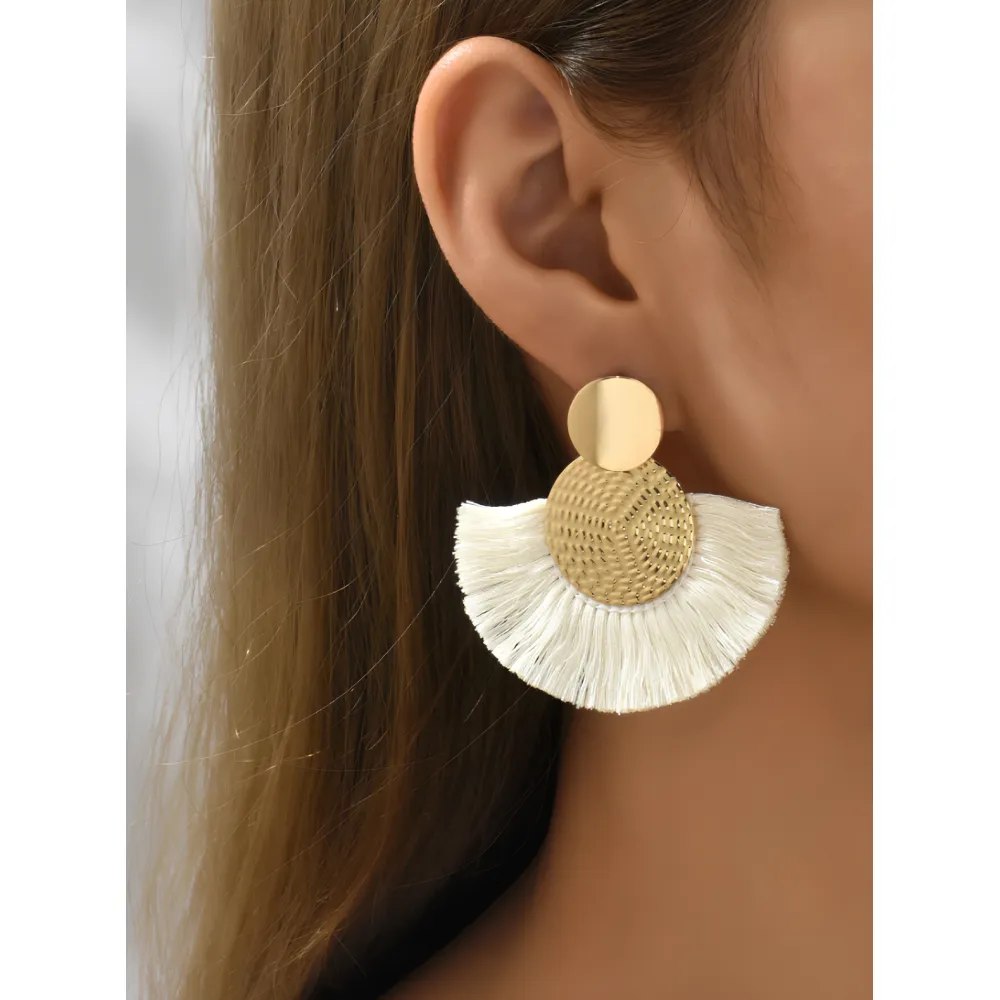 Cercei cu ciucuri, stil boho - 119600 Descriere: Există o varietate mare de cercei pentru femei disponibili pe site-ul nostru, în funcție de preferințele personale, buget și stil. Unele dintre cele mai populare tipuri de cercei pentru femei includ: Cercei simpli: Acești cercei sunt de obicei mici și subțiri și sunt potriviți pentru a fi purtați zilnic. Pot fi confecționați din aur, argint sau alte metale și pot fi accesorizati cu pietre prețioase sau semiprețioase.Cercei lungi: Acești cercei sunt potriviti pentru evenimente speciale sau pentru a fi purtați într-o seara de ieșire. Aceștia pot fi realizați din metale prețioase sau semiprețioase, cu pietre mari sau multiple.Cercei cu șurub: Acești cercei sunt ideali pentru femeile care preferă să poarte bijuterii subtile și nu doresc să aibă probleme cu pierderea lor. Aceștia se fixează printr-un sistem de șurub și sunt potriviți pentru utilizarea zilnică.Cercei cu cătușe: Acești cercei sunt populari în prezent, având o formă în stil minimal și modern. Aceștia se fixează printr-un sistem de cătușă și pot fi purtați într-o varietate de moduri, inclusiv cu vârful cătușelor în sus sau în jos.Cercei cu pietre: Acești cercei sunt potriviți pentru ocazii speciale și pot fi accesorizați Când vine vorba de cercei de vară, multe femei preferă stilul ușor și aerisit care se potrivește cu sezonul cald. Unele dintre cele mai populare stiluri de cercei de vară includ:Cercei cu franjuri: Acești cercei sunt potriviți pentru a completa o ținută casual de vară, cu un stil boem și cu aspect plin de personalitate.Cercei cu mărgele: Acești cercei cu mărgele sunt ideali pentru a completa o ținută cu un stil etnic sau tribal. Aceștia pot fi confecționați din lemn, os sau alte materiale naturale, pentru a conferi un stil autentic.Cercei colorați: Cerceii colorați sunt ideali pentru a conferi o atingere de culoare ținutei tale de vară. Aceștia pot fi confecționați din materiale cum ar fi plasticul sau sticla, pentru a fi ușori și confortabili.Cercei cu forme inspirate din natură: Cerceii cu forme inspirate din natură, cum ar fi frunzele sau florile, sunt ideali pentru a crea o atitudine relaxată de vară. Aceștia pot fi confecționați din argint, aur sau alte metale și pot fi accesorizați cu pietre prețioase sau semiprețioase.Cercei minimaliști: Cerceii minimaliști sunt ideali pentru femeile care preferă un stil simplu și subtil. Aceștia pot fi confecționați din metale prețioase sau semiprețioase, cu forme geometrice simple, cum ar fi cercurile sau triunghiurile. Acestea sunt doar câteva exemple de cercei pentru femei pe care ii avem. Înainte de a face o achiziție, este important să luați în considerare stilul personal și bugetul și să alegeți o pereche care să se potrivească cu preferințele și nevoile dvs. Dimensiune: 15cm