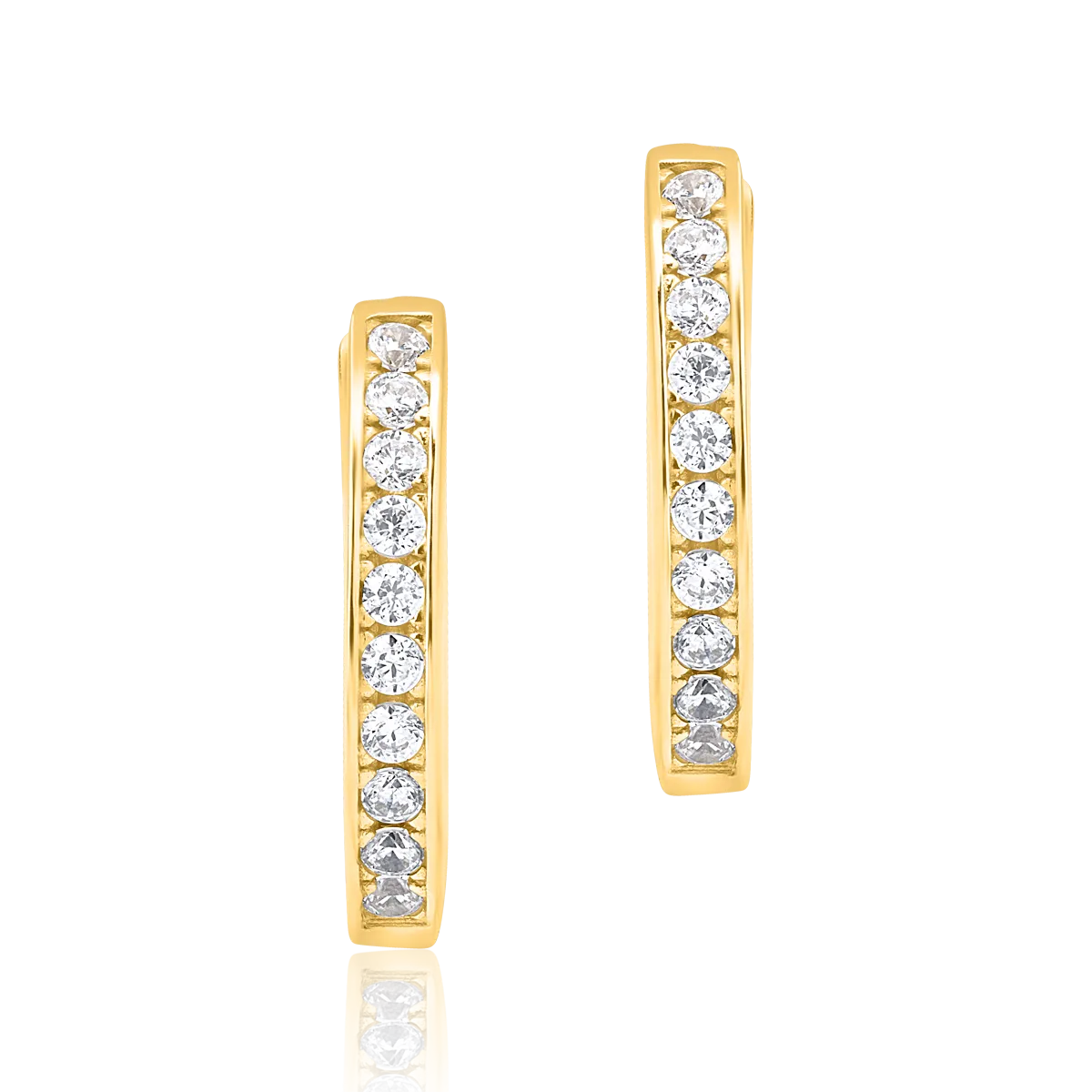 Bijuteriile vorbesc despre tine. Tu spune-ti povestea cu noi. Perechea de cercei din aur galben imbina echilibrat stralucirea cu eleganta intr-un design pretios. O emotie capturata intr-o piesa delicata. Un echilibru perfect intre modern si clasic care celebreaza fiecare clipa.