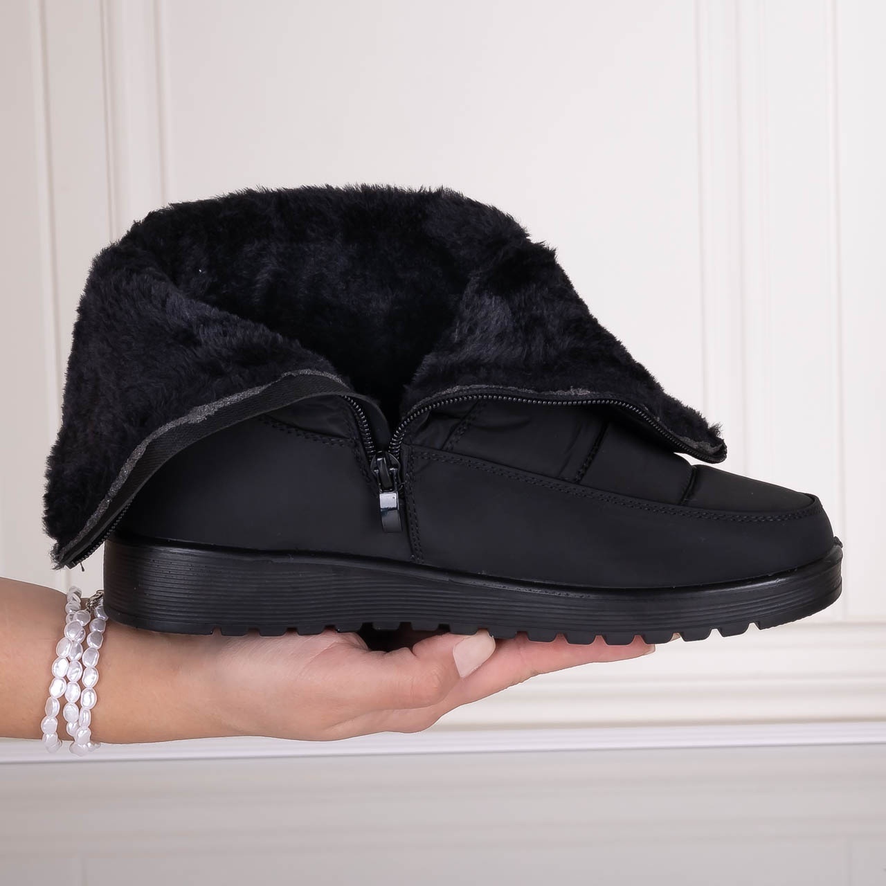 Ghete Dama Imblanite Negre din Piele Ecologica Intoarsa Onila