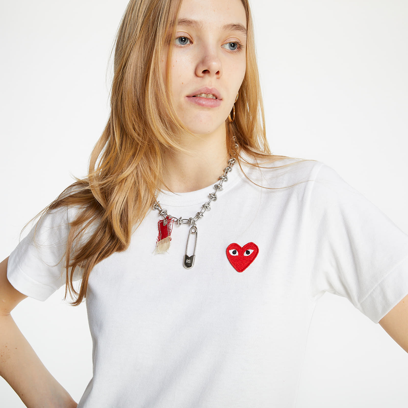 Tricou Comme des Garçons PLAY Heart Print Tee White pentru 449 lei. Cod produs: AZT033 white, material: 100% Bumbac