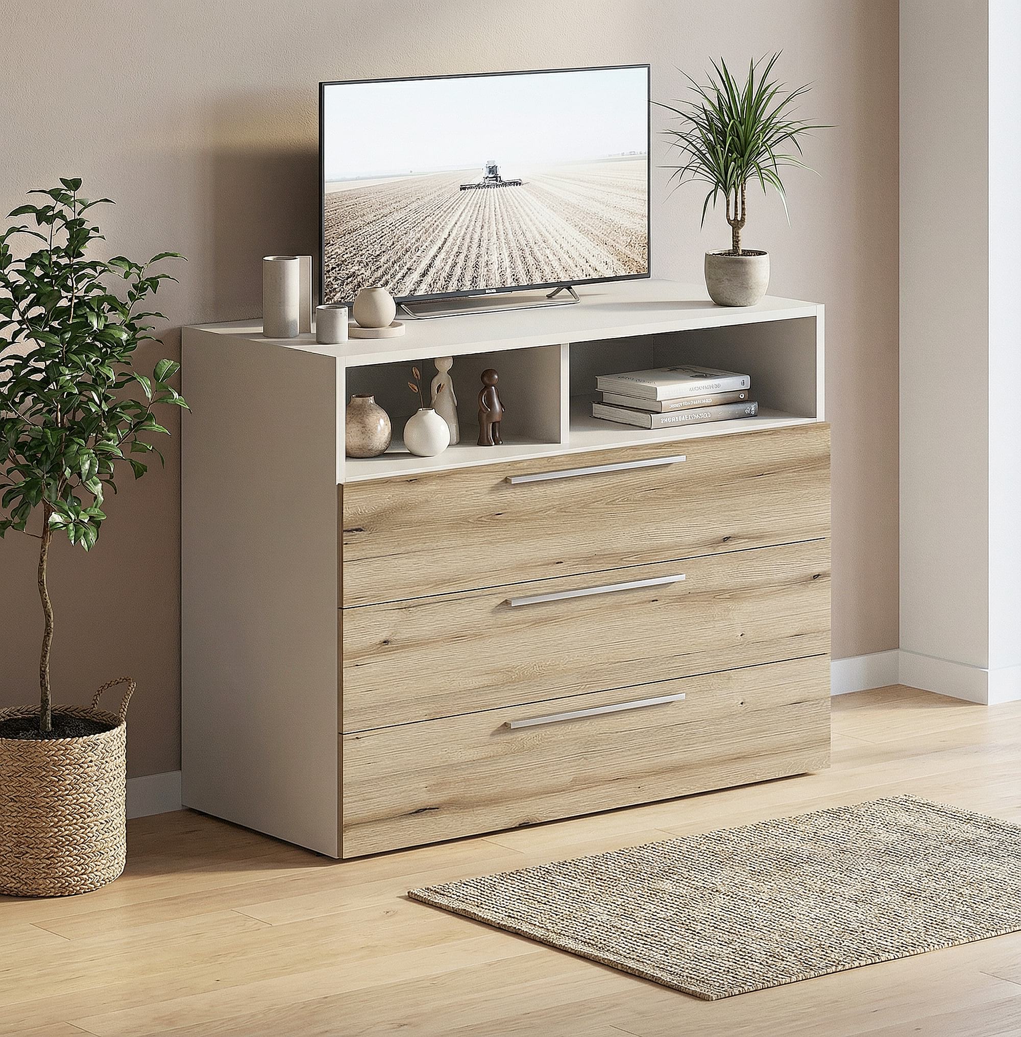 Comoda dormitor ARONA – funcționalitate, durabilitate si design atemporalCu peste 25 de ani de experiența in producția mobilierului de serie, TAMOS redefineste standardele pentru dulapurile modulare. Modelul ARONA exprima rafinamentul decorului Alb Porțelan si Antracit oferind un design versatil, potrivit oricarui dormitor modern.Construit din materiale de calitate superioara si echipat cu feronerie Hafele Germania, Comoda ARONA 90, 3S, Alb Portelan, Antracit asigura o utilizare sigura, silențioasa si durabila in timp. Comoda ARONA 90Lungime: 90 cmAdancime: 42 cmInalțime: 74 cm (72cm carcasa + 2cm picioarele reglabile)Construcție solida: Carcasa solida din PAL de 16 mm – Durabila si stabila, in nuanțe neutre usor de integrat.Asamblare un sistem rastex/cama si cepi de lemnPFL inserat in nut pentru un plus de rezistențaDesign simplu si modern: Finisaj Alb cu Antracit potrivit pentru orice stil de dormitor.Sertare spatioase cu glisare soft-close – Inchidere silențioasa si confort zilnic.Glisiere cu bile Hafele Matrix BB S30 lungime 350 mm, 30 kg,H=45 mm, stop extragere totala (lungime 35cm)Picioruse metalice cu reglaj de inalțime (15-20mm) – Stabilitate pe orice suprafața, design elegant, culoare la alegere.Manere metalice argintii – Detaliu subtil, nu plastic! Mobilier kit - se livreaza demontat, ambalat in cutii de cartonKitul contine schita montaj, feronerie, certificat garantie si conformitate MaterialePAL dublu melaminat 16mm - Alb Portelan - carcasaPAL dublu melaminat 16mm - Alb Portelan, Antracit - fronturileCant ABS 1mmDecorul Alb Porțelan - W1200 de la Egger este un alb cald si neutru, usor mai moale decat un alb pur, ceea ce il face potrivit atat pentru spații moderne, cat si pentru interioare clasice. In funcție de lumina ambientala, poate parea mai deschis sau mai cald, dar este gandit sa ofere o senzație de echilibru si confort vizual.Decorul Antracit - 0164 de la Kronospan se afla la capatul mai intunecat al paletei de gri, fiind un ton dominant si sofisticat. Luciul sau metalic ii confera profunzime, facandu-l sa para in camere cu iluminare redusa aproape negru, dar in acelasi timp integrat in gama griurilor. Este un decor neutru puternic, excelent pentru accente moderne sau pentru a crea contraste rafinate. Antracitul se combina perfect cu decoruri de lemn rustic sau natural, dar si cu alburi calde, cum este Egger Alb Porțelan W1200, pentru un design elegant si contemporan.*Mobilierul comercializat este de serie si configurabil, iar anumite colecții pot include zone de pre-gaurire prevazute inca din faza de proiectare. Aceste elemente sunt gandite astfel incat sa permita adaptarea polițelor interioare la diferite inalțimi si fac parte din soluția constructiva care asigura flexibilitatea si compatibilitatea componentelor. Aceste particularitați nu reprezinta defecte de fabricație. Garantie producator 24 luni Livrare Gratuita in toata tara*Manipularea produsului nu este inclusa. Acesta se preia de la masina.*Accesoriile din imagine nu sunt incluse in pret( Haine , perne , lampi , veioze...)...