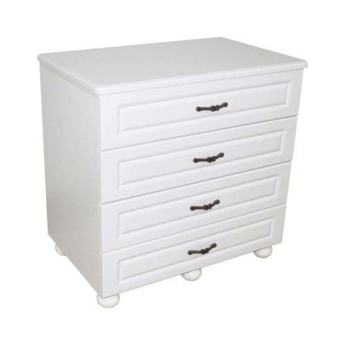 Comoda Dynasty cu 4 sertare este extrem de spatioasa si eleganta. Carcasa comodei este fabricata din PAL melaminat Alb cu grosimea de 16 mm, iar fetele sertarelor sunt fabricate din MDF Alb cu grosimea de 18 mm. Fetele sertarelor sunt frezate pentru un aspect elegant, iar blatul comodei fabricat din MDF Alb cu grosimea de 25 mm desavarseste acest aspect elegant, dar asigura si o rezistenta sporita la depozitarea unor obiecte grele pe comoda. Picioarele clasice sunt fabricate din lemn si sunt vopsite, iar manerele metalice antichizate contribuie si ele la aspectul deosebit al comodei. Cele 4 sertare au glisiere cu bile si amortizare pentru o inchidere silentioasa, iar impreuna cu fundurile din PAL melaminat cu grosimea de 16 mm asigura o rezistenta sporita pentru folosirea zilnica a sertarelor. Lungimea comodei este de 900 mm fara blatul din MDF si 930 mm cu tot cu blatul din MDF. Inaltimea totala este de 905 mm, iar adancimea este de 580 mm. CARACTERISTICI GENERALE Tip produs: Comoda Utilizat pentru: Dormitor Stil: Clasic Numar sertare: 4 Finisaj: Laminat Culoare: Alb DETALII MATERIAL Tip fronturi: MDF Material blat: MDF Material carcasa: PAL Material feronerie: Metal DIMENSIUNI Lungime: 93 cm Adancime: 58 cm Inaltime: 90 cm *Nota: Schita de montaj nu se afla in interiorul coletului intre piesele de mobila. Schita de montaj o sa fie atasata pe spatele facturii.