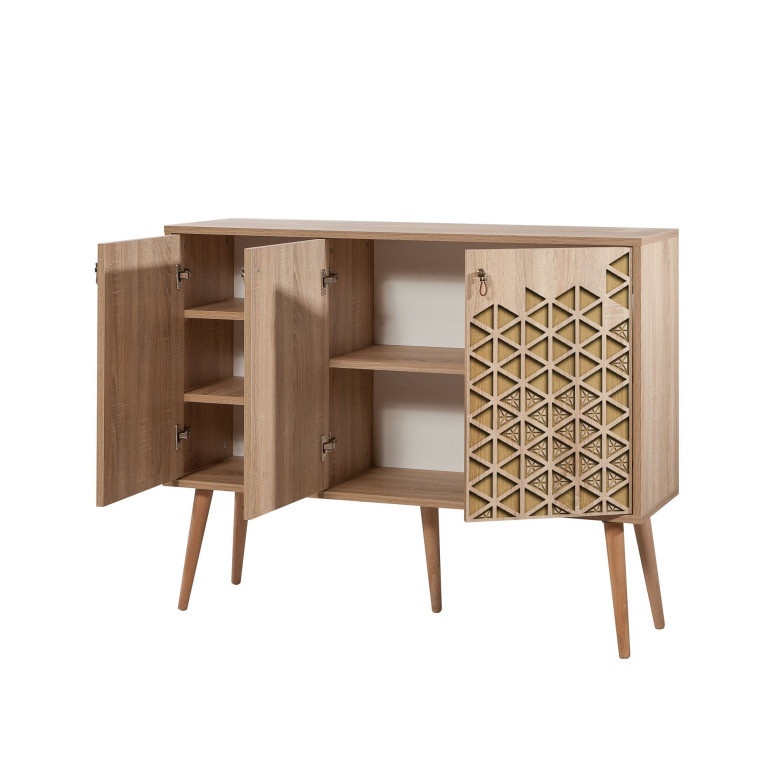 • 100% PAL melaminat•Grosime PAL: 18 mm•Picioare din lemn de carpen•Manere din metal și frânghie•Acoperire UV•Lățime: 120 cm Inălțime: 90 cm Adâncime: 36 cm•Dimensiunile raftului din dreapta: Lățime: 77,6 cm Inălțime: 27 cm•Dimensiunile raftului din stânga: Lățime: 38,8 cm Inălțime: 17 cm•Înălțimea picioarelor: 30 cm•Numeroase rafturi•Poate fi fixat pe perete•Spațiu de depozitare suplimentar