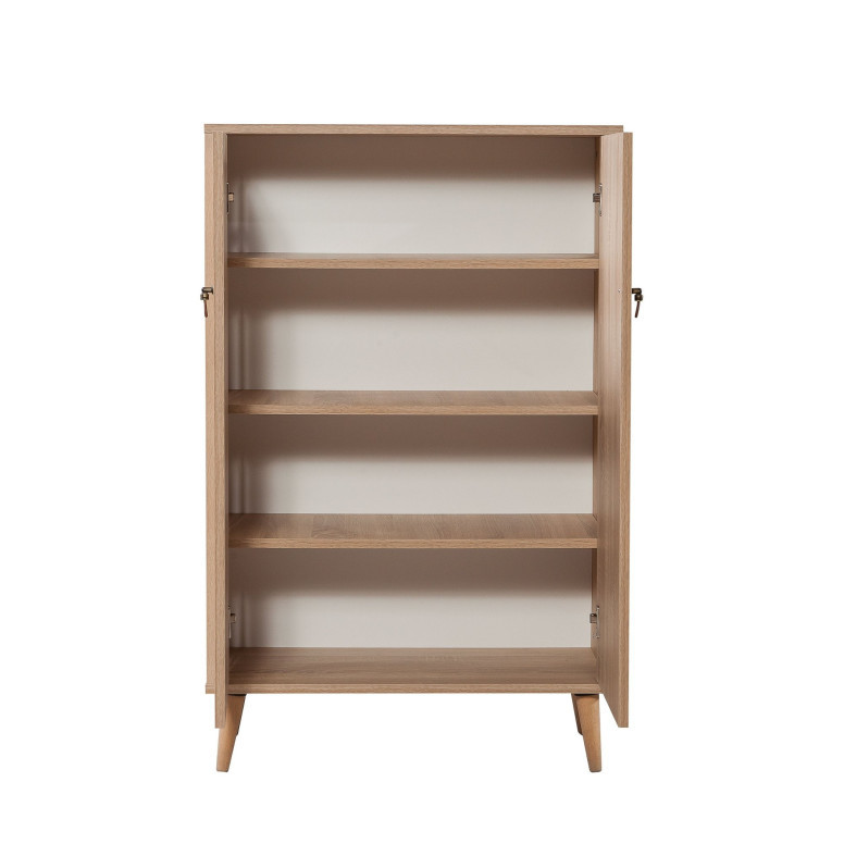 • 100% PAL melaminat•Grosime PAL: 18 mm•Picioare din lemn de carpen•Manere din metal și frânghie•Acoperire UV•Lățime: 80 cm Inălțime: 127 cm Adâncime: 36 cm•Înălțimea raftului: 25,5 cm•Înălțimea picioarelor: 15 cm•Numeroase rafturi•Poate fi fixat pe perete•Spațiu de depozitare suplimentar