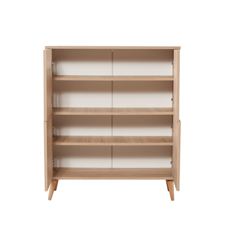 • 100% PAL melaminat•Grosime PAL: 18 mm•Picioare din lemn de carpen•Manere din metal și frânghie•Acoperire UV•Lățime: 95 cm Inălțime: 111 cm Adâncime: 36 cm•Înălțimea raftului: 19,8 cm•Înălțimea picioarelor: 15 cm•Numeroase rafturi•Poate fi fixat pe perete•Spațiu de depozitare suplimentar
