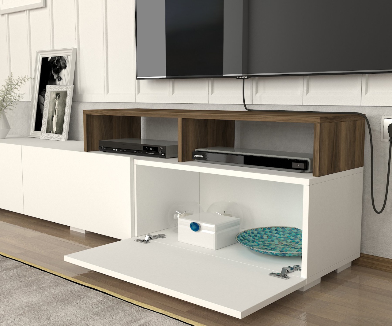 Comodă TV, UnicUtil, Sharp Line, Alb-Maro, cod UUTVU30 – Linii clare, spațiu vertical generos și contrast elegant pentru un living bine organizat Ai nevoie de mai mult decât o simplă comodă TV? Atunci când funcționalitatea se extinde dincolo de suportul pentru televizor, ai nevoie de o piesă versatilă, cu un design inteligent și estetic plăcut. Sharp Line de la UnicUtil îmbină perfect liniile moderne și contrastul rafinat dintre alb și maro, pentru a crea un mobilier cu prezență vizuală puternică, dar echilibrată. Este ideală pentru camere spațioase, unde dorești o zonă media organizată, cu multiple spații de depozitare – de la decorațiuni și cărți, până la echipamente multimedia. Cu dimensiuni impresionante de 210 cm lățime, 30 cm adâncime și 149.5 cm înălțime, această comodă TV devine piesa centrală din living, aducând structură și claritate întregului decor. Avantaje esențiale: Design modern, cu linii bine conturate și contrast maro-alb elegant Spațiu vertical generos: 210 x 30 x 149.5 cm Compartimente multiple pentru organizare eficientă Perfectă pentru televizoare mari + accesorii media, cărți, decorațiuni Realizată din pal melaminat rezistent, cu întreținere ușoară Alege Sharp Line de la UnicUtil – comoda TV care definește un spațiu ordonat, estetic și extrem de funcțional, adaptat nevoilor moderne.