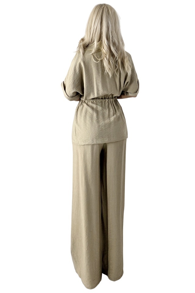 ? Material & Confort ⚪ Confectionat din viscoză moale și respirabilă ⚪ Textură lejeră, ideală pentru sezonul cald ⚪ Banda elastică în talie – adaptabilă și practică Compleul casual din viscoză LUNIA este alegerea perfectă pentru femeia modernă care își dorește confort, eleganță lejeră și libertate de mișcare într-o singură ținută. Cămașa lungă, cambrată în talie cu ajutorul unui șnur reglabil, creează o siluetă feminină, punând subtil în valoare formele fără a sacrifica lejeritatea. Buzunarele frontale adaugă un detaliu practic, dar și o notă casual-chic, transformând piesa într-una versatilă, ideală atât pentru birou, cât și pentru timpul liber. Pantalonii palazzo sunt croiți larg, cu linie fluidă și talie elastică, oferind confort pe tot parcursul zilei și un aer elegant fără efort. Banda elastică din talie asigură o potrivire relaxată și adaptabilă, fără fermoare sau nasturi, ușor de integrat într-o rutină activă. LUNIA este acel compleu care arată bine purtat împreună, dar și separat – cămașa poate fi purtată ca bluza lejeră si colanti, iar pantalonii cu un top simplu sau bustieră. Este o alegere inspirată pentru city breaks, plimbări de weekend, ieșiri la brunch sau zile la birou unde stilul se îmbină cu funcționalitatea. ? LUNIA – două piese, un infinit de posibilități. Caracteristici compleu: - croiala palazzo, cu talie inalta - pantaloni lungi cu textura vaporoasa si uscare rapida - banda elastica in talie - bluza cu efect oversize, cambrata in talie si mansete la maneci - buzunare practice in partea superioara - model prezent in colectie cromatica - material: 97% vascoza, 13% poliester; Made in Italy! Marime universala compatibila cu marimea S sau marimea M! Lungime bluza: 75 cm; Lungime pantaloni: 110 cm; Circumferinta bust: 140 cm; Eticheta produsului conține informații esențiale referitoare la întreținerea și spălarea corectă a articolelor vestimentare. Imaginile Fashionforyou au caracter informativ, iar nuanta, tonul si intensitatea culorii pot varia in functie de monitor/ecran telefon.