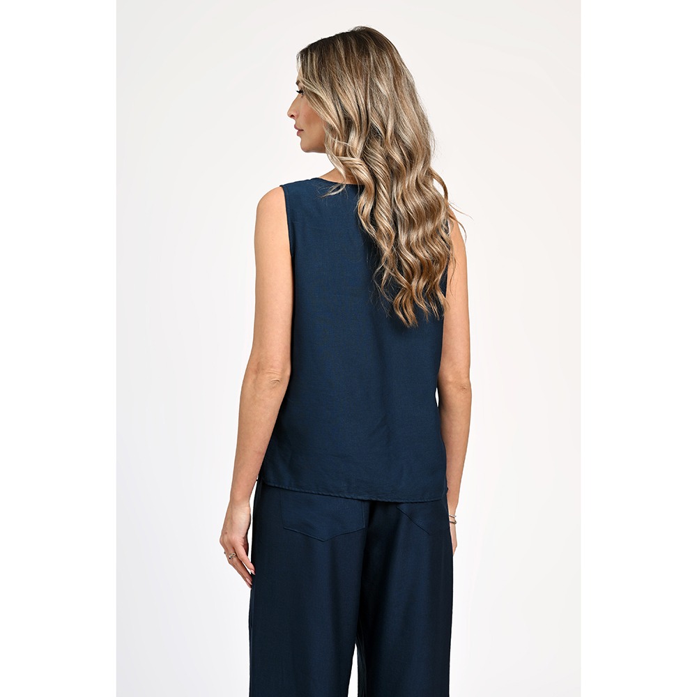 Compleu bleumarin din vâscoză și poliamidă – confort și stil într-un design casual-chicAcest compleu versatil este format dintr-o bluză fără mâneci și pantaloni, perfect pentru zilele călduroase sau momentele de relaxare. Realizat dintr-un material plăcut la atingere, compus din 80% vâscoză și 20% poliamidă, oferă respirabilitate și lejeritate pe tot parcursul zilei.Bluza are un croi în A, ușor evazat, cu un decolteu rotund și slituri laterale discrete pentru un plus de confort și libertate de mișcare. Designul minimalist o face ușor de asortat, păstrând totodată un aer feminin și modern.Pantalonii au o talie medie cu betelie elastică și un croi lejer, ce asigură libertate de mișcare. Sunt prevăzuți cu buzunare laterale și la spate, adăugând un plus de funcționalitate ținutei.Ideal pentru plimbări, activități lejere sau pentru momentele în care vrei să îmbini confortul cu un stil simplu și rafinat.Creat cu grijă într-un atelier de creație din România, acest produs este semnat de un designer local sub brandul Eranthe și realizat într-o serie foarte limitată. Fiecare exemplar reflectă atenția pentru detalii, și dorința de a oferi ceva cu adevărat special – o piesă care spune o poveste autentică și care nu se regăsește în producția de masă.