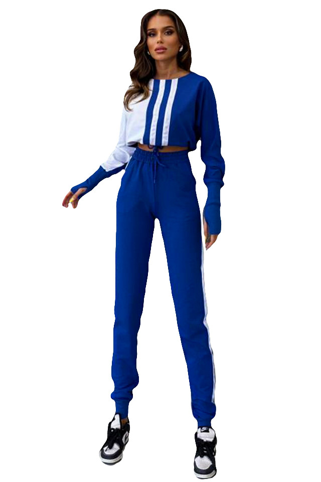 Compleu sport One Balance, bluza cu manseta tip manusa, snur in talie si pantaloni cu banda elastica, Albastru