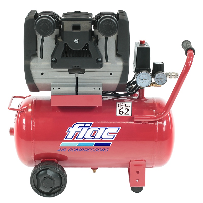 Compresor fara ulei, insonorizat, FIAC tip XILENCE24-XS1HP XILENCE24-XS1HP este un compresor fara ulei, coaxial, cu doua pistoane actionate de un motor electric monofazat. Grupul compresor are o constructie robusta, motor cu inductie, aripioare de racire a cilindrilor si a capacului chiulasei, ventilatie fortata cu debit mare,ce produce aer total lipsit de ulei. Compresorul este echipat cu o pompa de generatie noua, model XS88, cu randament imbunatatit si fiabilitate mai buna decat pompele precedente. Este echipat cu presostat cu protectie termica cu resetare automata, regulator de presiune, manometru, supapa de siguranta, robinet de purjare a condensului, roti si maner pentru transport. Butelie cu doua picioare de sprijin pentru o buna stabilitate. Datorita constructiei speciale a pompei de aer, acest compresor este extrem de silentios (doar 59dB). Compresorul este echipat cu pompa XS88, cu doua filtre de aer metalice pentru o durata lunga de viata a pompei si o calitate ridicata a aerului comprimat. Tensiune alimentare: 230 V Volum butelie: 24 l Presiune maxima: 9 bar Transmisie: antrenare directa Putere (kW): 0.75 kW Putere motor (CP): 1.0 CP Debit de aer aspirat: 140 l/min Debit de aer refulat: 90 l/min Ungere: Autolubrefiat (fara ulei) Numar cilindri: 2 Turatie: 1420 rpm Tip compresor: Cu roti Nivel de zgomot (LpA, la 4m): 59 dB(A) Dimensiuni (L x l x H): 601 x 245 x 609 mm Greutate: 27.5 kg