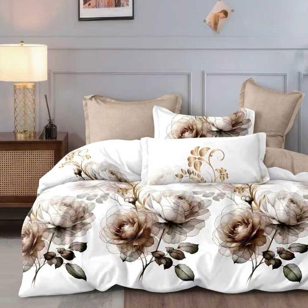 ConfortSoft - Husa de Pat Premium din Catifea Matlasata 140x200 + 2 Fete Perna - Maro Deschis - CECTF_M033