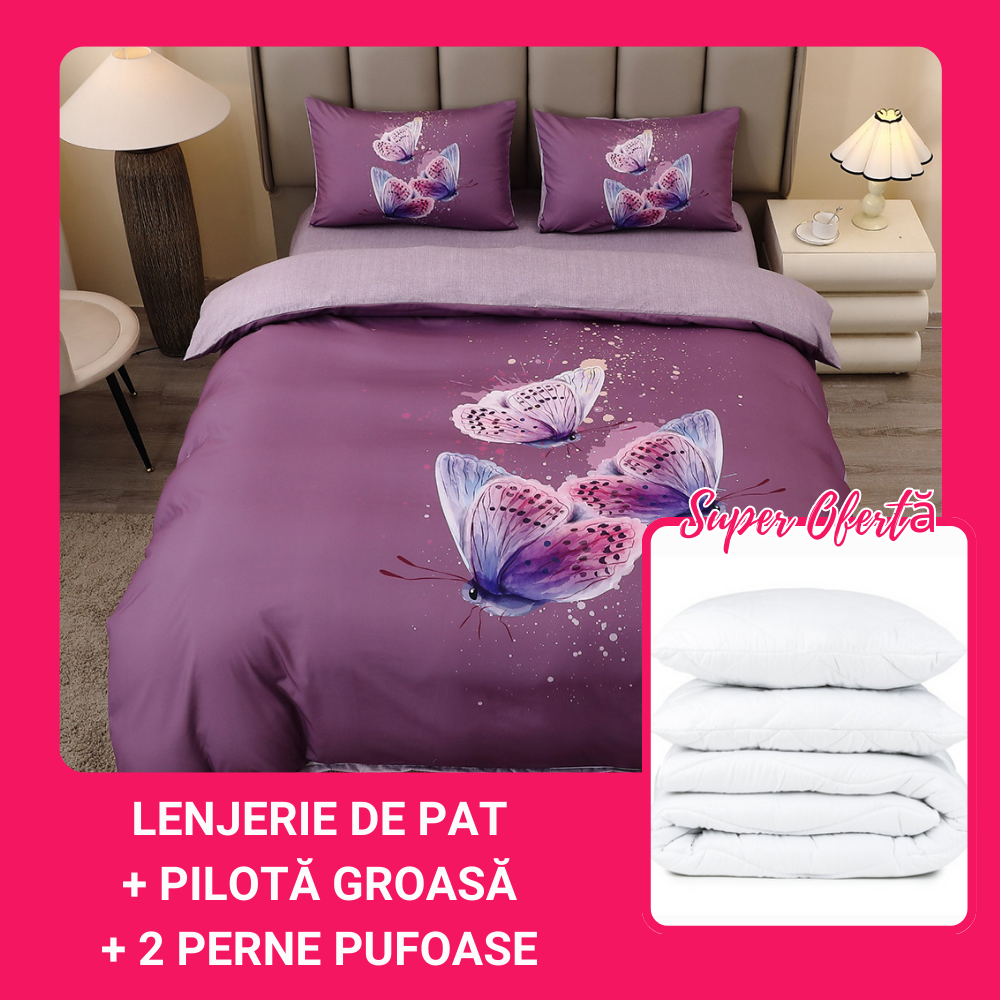 CONFORTSOFT - HUSA DE PAT PREMIUM DIN CATIFEA MATLASATA + 2 FEȚE DE PERNĂ Această husă ConfortSoft oferă un strat suplimentar de confort și eleganță oricărui dormitor. Matlasarea sa unică, în formă de romburi, nu numai că adaugă un aspect de lux, dar susține și corpul pentru o odihnă optimă pe parcursul nopții. Nu mai amana si cumpara acum noile noastre Huse pentru saltea cu elastic pentru a beneficia de cel mai confortabil si linistit somn de pana acum. Fii sigur/a ca te vei trezi fara nicio durere de spate astfel incat sa fii gata pentru o noua zi plina de energie.COMPOZIȚIA LENJERIEI: Compoziția husei este dintr-un material de tip catifea matlasata Materialul este de calitate superioară, foarte rezistent și ușor de întreținut. CONȚINUTUL LENJERIEI: Acest set conține 3 piese: 1 cearceaf de pat cu elastic potrivit pentru saltea (dimensiuni: 160x200 cm +/- 5cm) și 2 fețe de pernă (dimensiuni: 50x70 cm +/- 5cm).ÎNTREȚINEREA LENJERIEI: Lenjeria se spală la max. 30°C și se calcă la max. 130°C. Pentru rezistență sporită, nu recomandăm spălarea cu înălbitori chimici. NOTĂ: Pozele afișate sunt cu titlu de prezentare și au scop comercial. Pot exista mici diferențe de nuanță și de încadrare a imprimeului. Dimensiunile pot varia cu ±5cm.