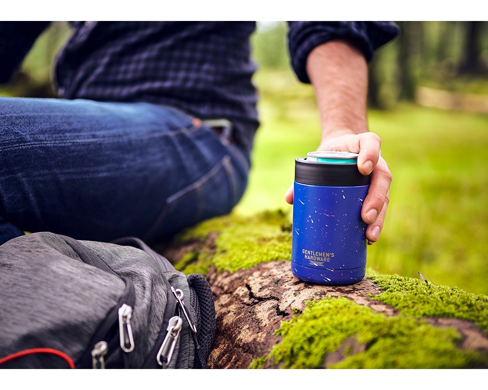 Cooler din otel inoxidabil, ce va va pastra rece sticla sau cutia cu capacitatea de 330 ml.
