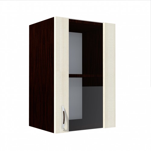 Corp superior 40 vitrina cu 1 usa Sofia ladin. Dimensiuni (l x h x a): 400 x 600 x 307 mm Culoare: Wenge cu ladin. Materiale folosite: Pal melaminat, manere aluminiu, balamale metal, sticla. Pachetul vine cu 2 placute metalice de suspendare corpuri mobila (poza). *Nota: Schita de montaj nu se afla in interiorul coletului intre piesele de mobila. Schita de montaj o sa fie atasata pe spatele facturii.