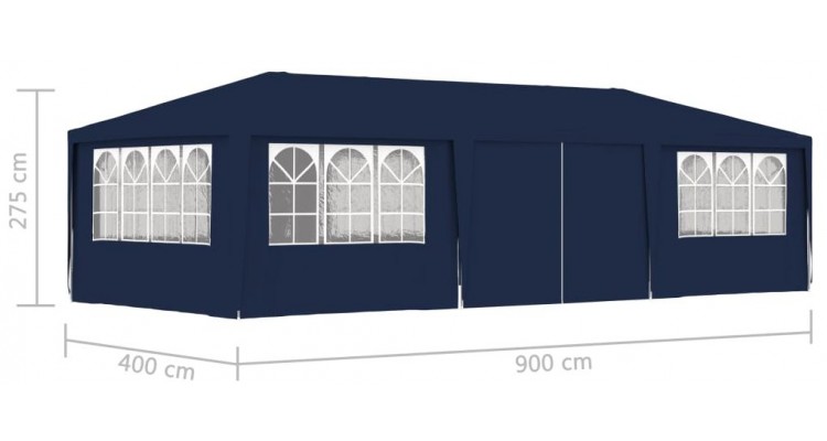Culoare: Albastru Material: 90 g/m² PE (polietilena 100%), otel Dimensiuni: 4 x 9 x 2,75 m (l x ad. x i) Inaltime de la sol la streasina: 2 m Cu pereti laterali Rezistent la apa si la raze UV Materiale de montaj incluse: Da Cortul de petrecere ofera un spatiu minunat in care sa va distrati alaturi de familie si prieteni la o varietate de petreceri si reuniuni in aer liber. Pavilionul de gradina este realizat din polietilena rezistenta la apa si raze UV, fiind foarte practic pentru utilizarea in exterior. Cadrul este fabricat din otel rezistent la rugina, asigurand stabilitate si durabilitate copertinei de exterior. Cortul de petreceri este prevazut cu panouri laterale, fiecare cu ferestre decorative, si cu o usa cu fermoar, pentru acces usor. Pavilionul de gradina este usor de asamblat. NOTA: Acest produs nu trebuie folosit NICIODATA in conditii de vreme rea, precum vant puternic, ploaie abundenta, zapada, furtuna etc.