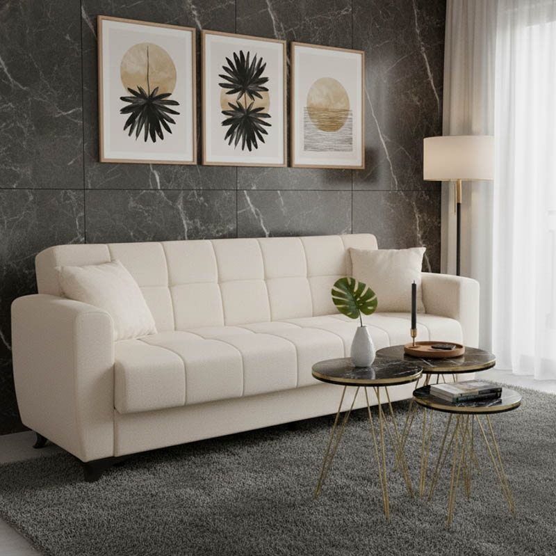 Canapea Extensibila 3 Locuri Modesto, crem, 215x85x80 cm