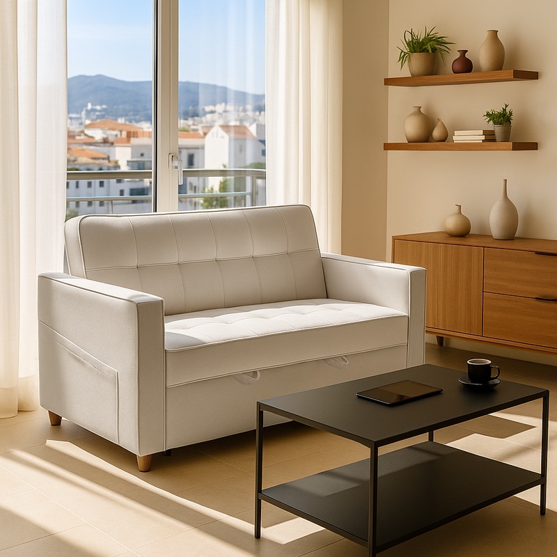 Canapea Extensibila 2 Locuri Modesto, crem, 155x85x80 cm