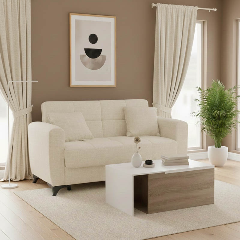 Canapea Extensibila 2 Locuri Polaris, ecru, 181x91x83 cm
