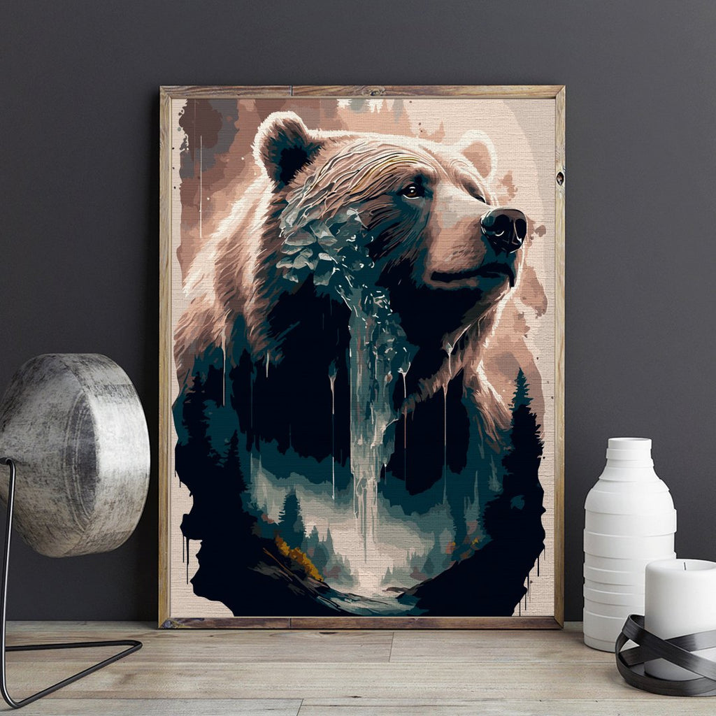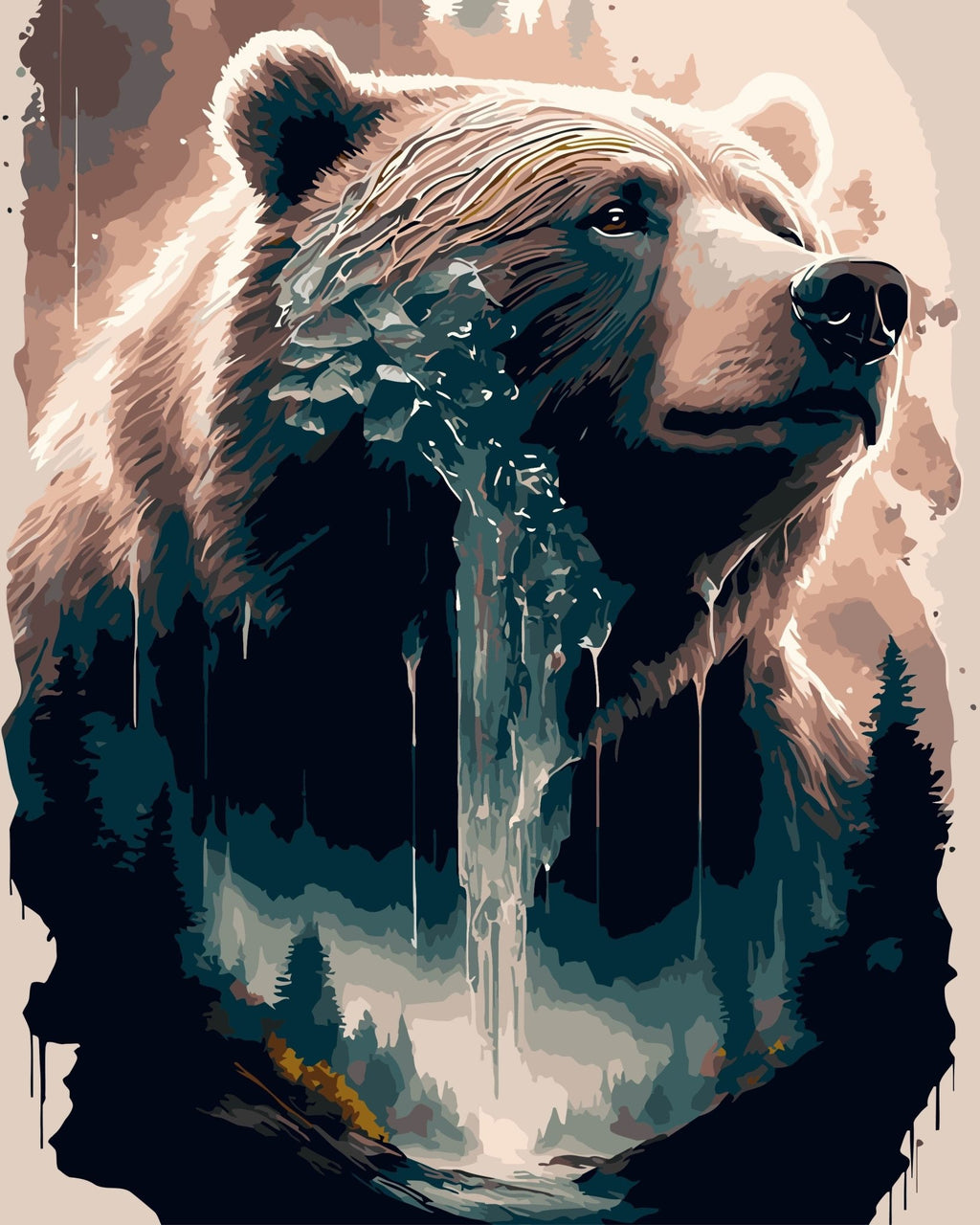 Un urs este animalul sălbatic impunător, însă în varianta picturii pe numere Double exposure este înfățișarea naturii, este despre cuprinsul munților și tot ce reprezintă acest mediu.