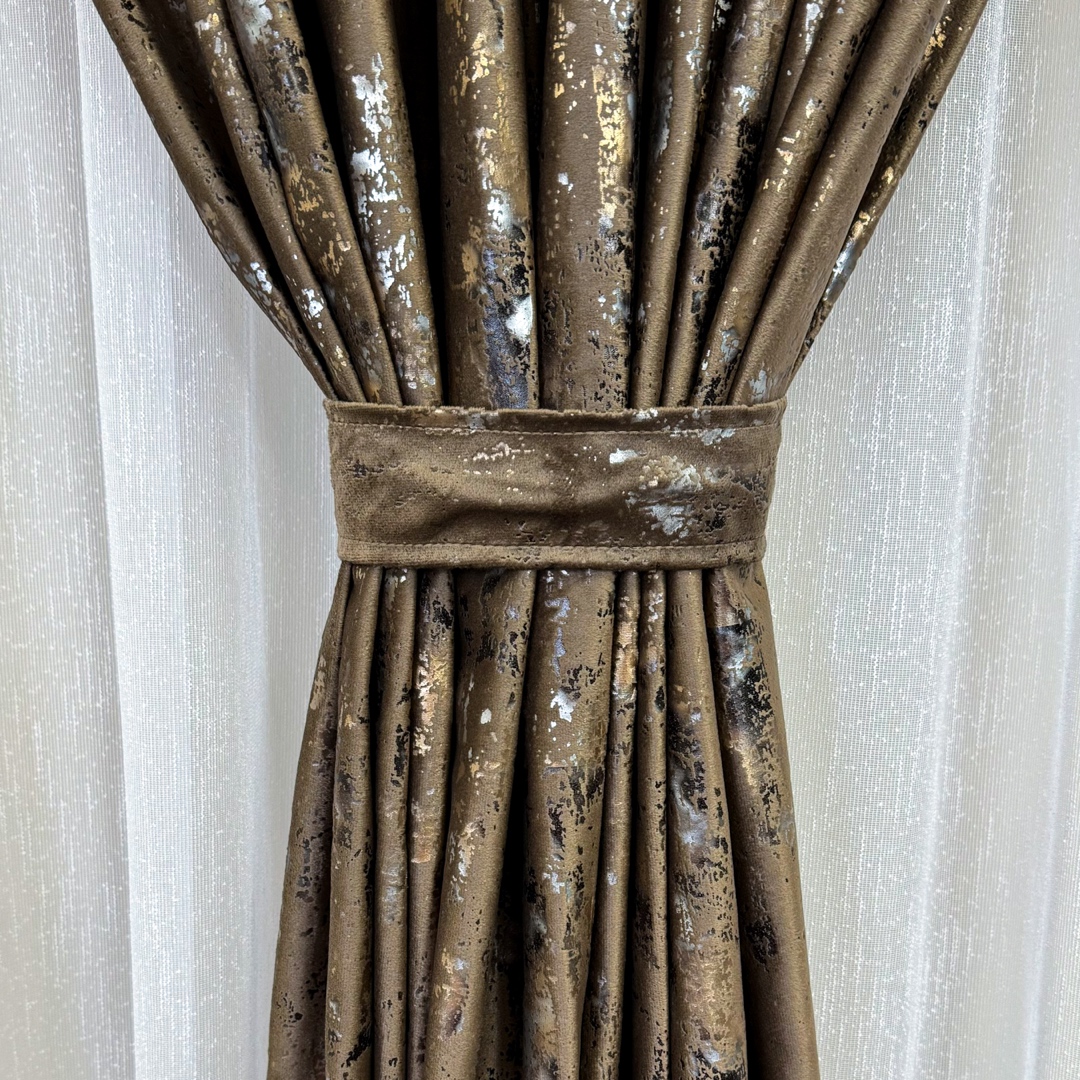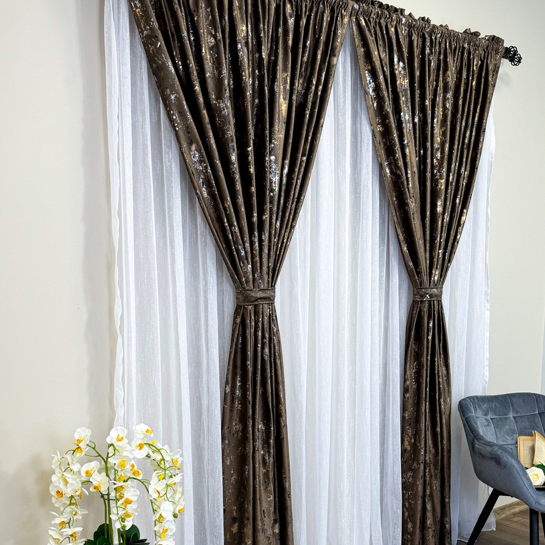 Draperiile din catifea cu insertii aurii reprezinta o alegere sofisticata si luxoasa pentru orice incapere. Aceste draperii sunt confectionate dintr-un material de inalta calitate, catifea, care ofera o textura moale si bogata, aducand un sentiment de rafinament si eleganta in orice spatiu. Ceea ce face draperiile cu insertii aurii cu adevarat remarcabile sunt detaliile aurii. Aceste insertii aurii adauga un element de stralucire si glamour, creand un contrast elegant cu textura mata a