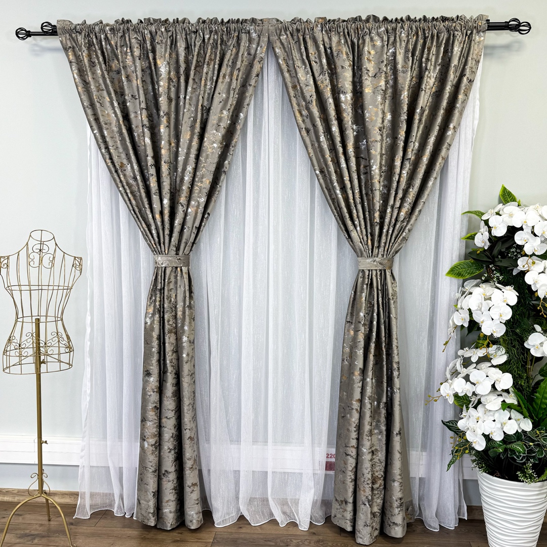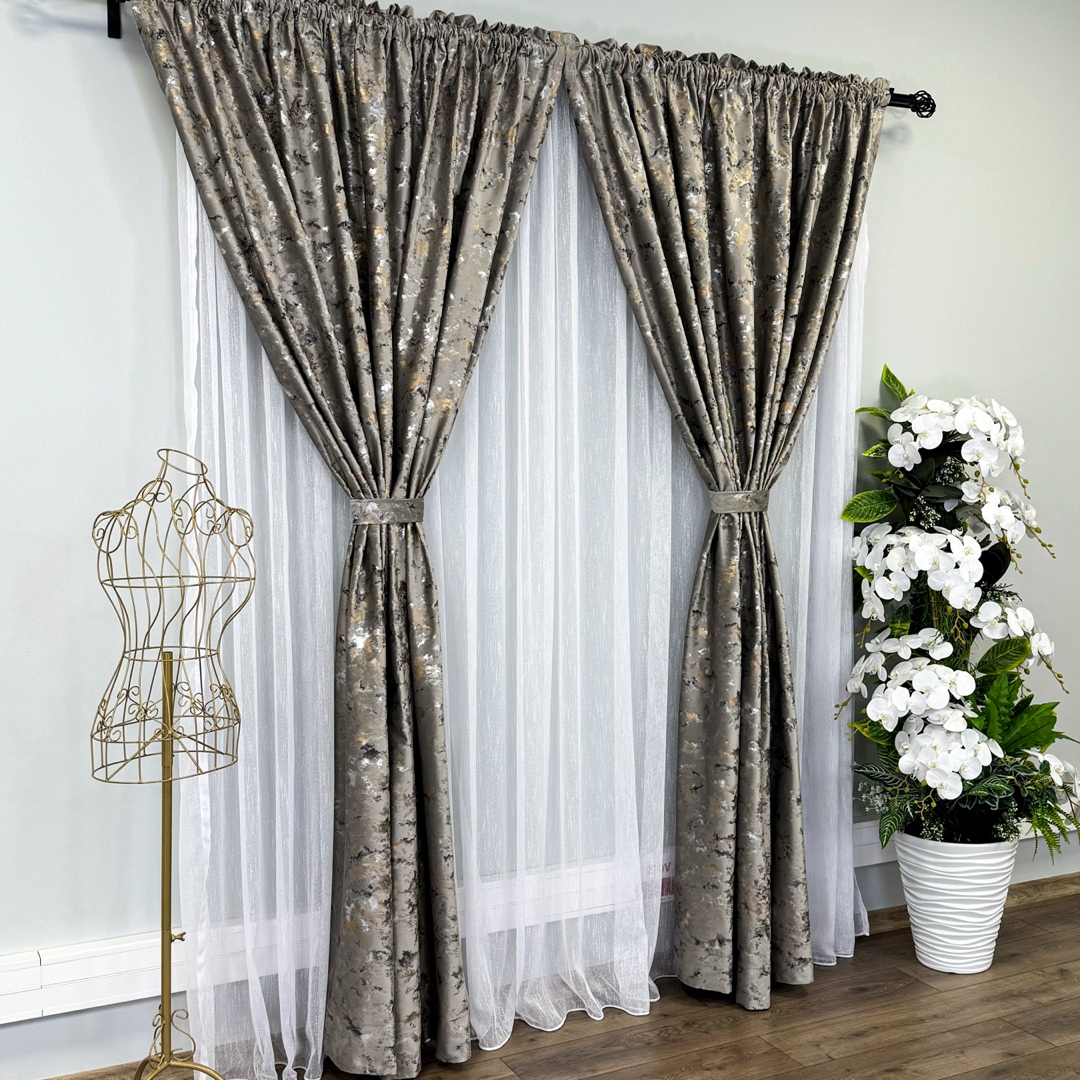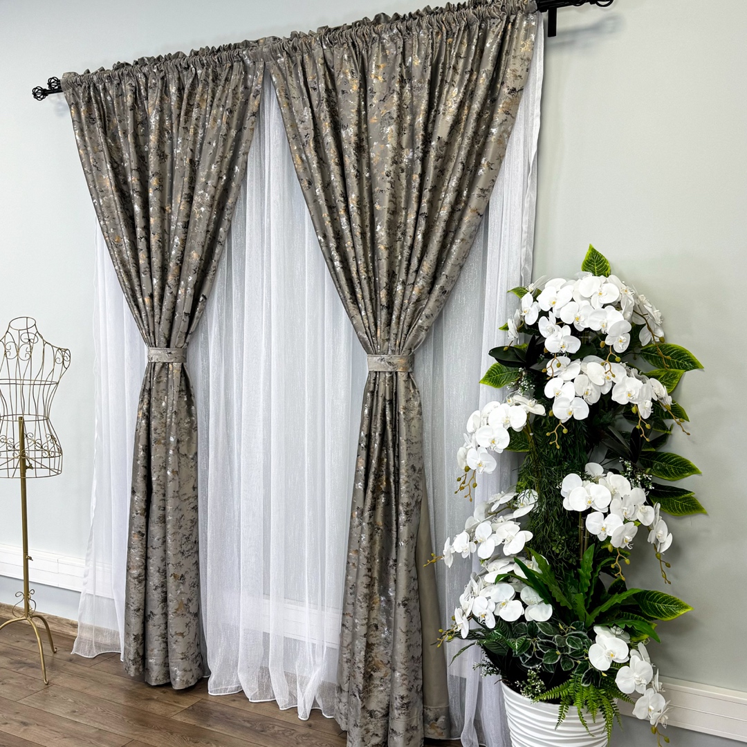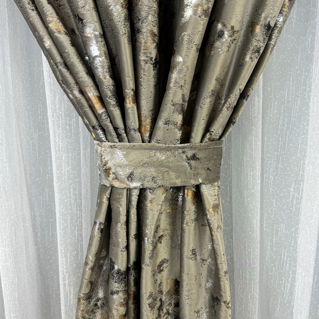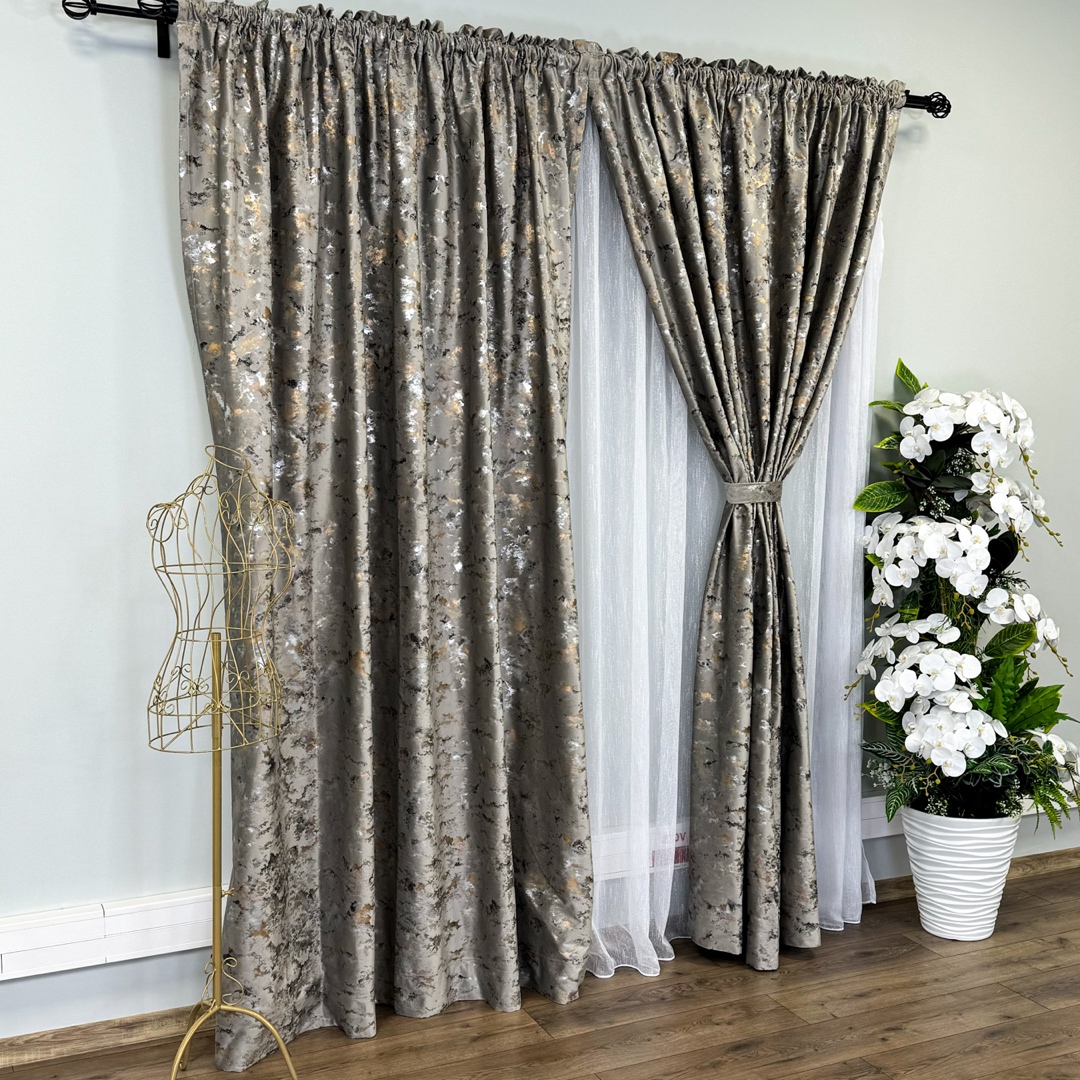 Draperiile din catifea cu insertii aurii reprezinta o alegere sofisticata si luxoasa pentru orice incapere. Aceste draperii sunt confectionate dintr-un material de inalta calitate, catifea, care ofera o textura moale si bogata, aducand un sentiment de rafinament si eleganta in orice spatiu. Ceea ce face draperiile cu insertii aurii cu adevarat remarcabile sunt detaliile aurii. Aceste insertii aurii adauga un element de stralucire si glamour, creand un contrast elegant cu textura mata a