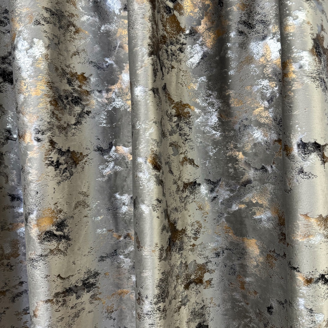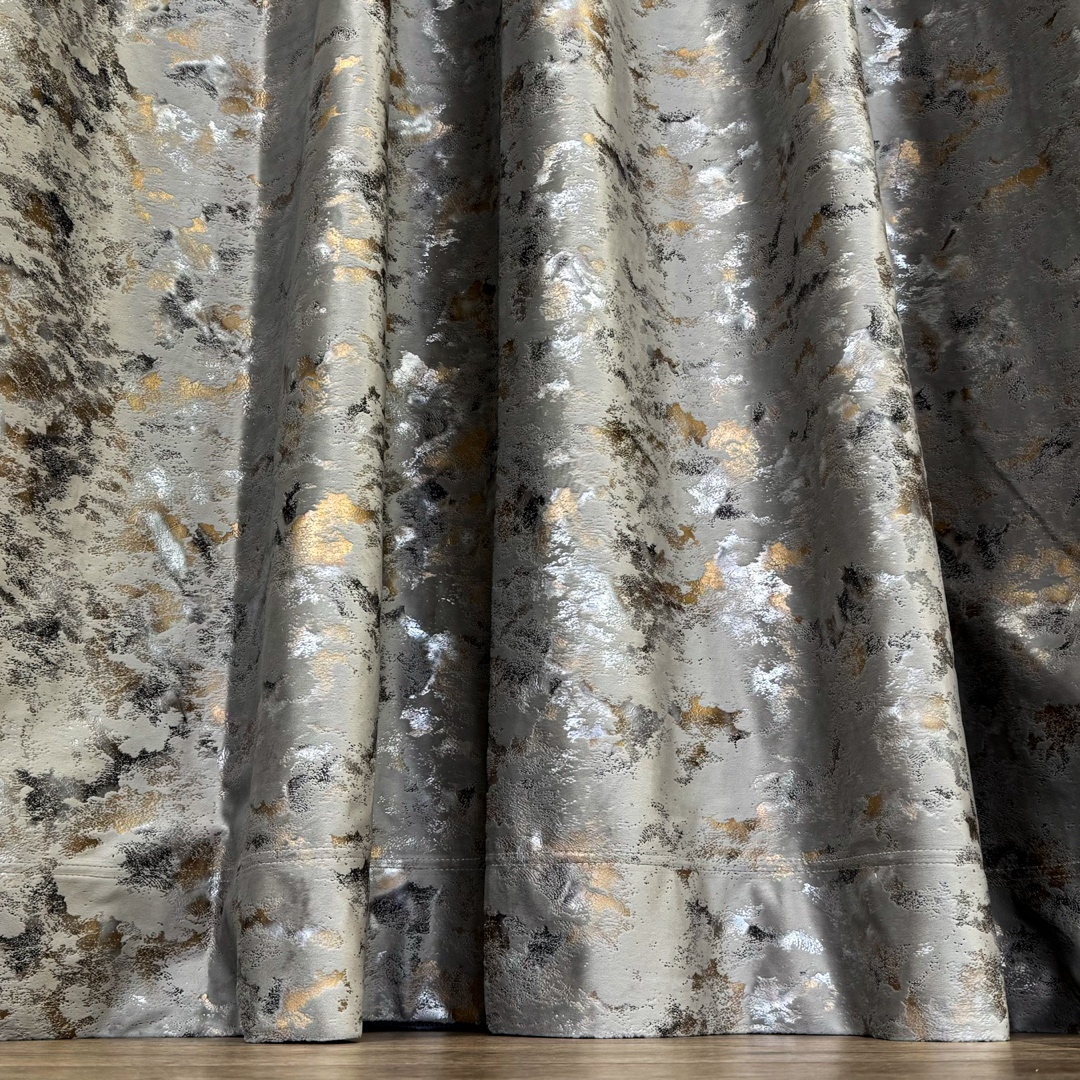 Draperie Catifea Nikko cu insertii aurii, Grej inchis - V31, 140cm latime x 260cm inaltime, cu tiv lat bara