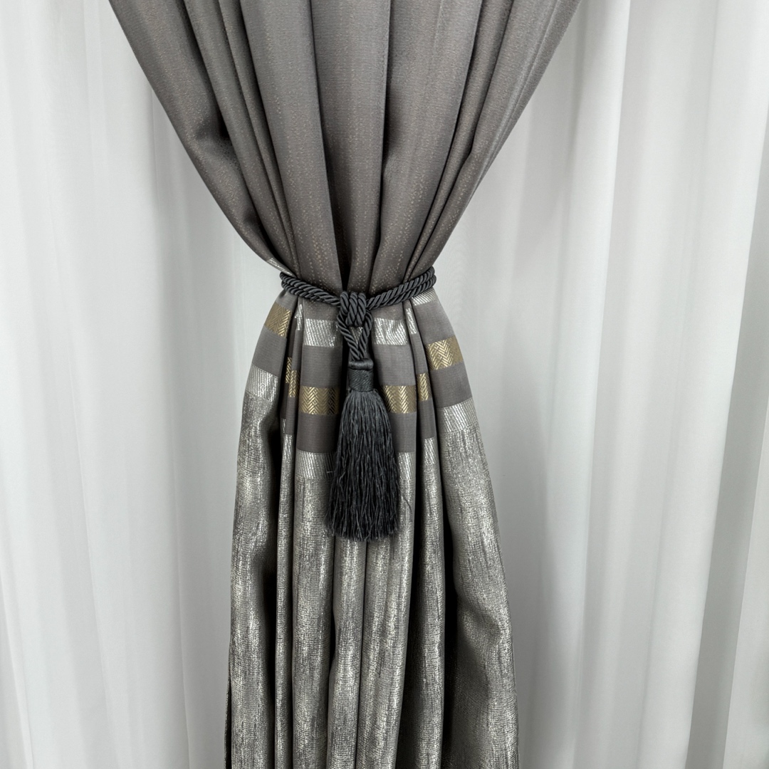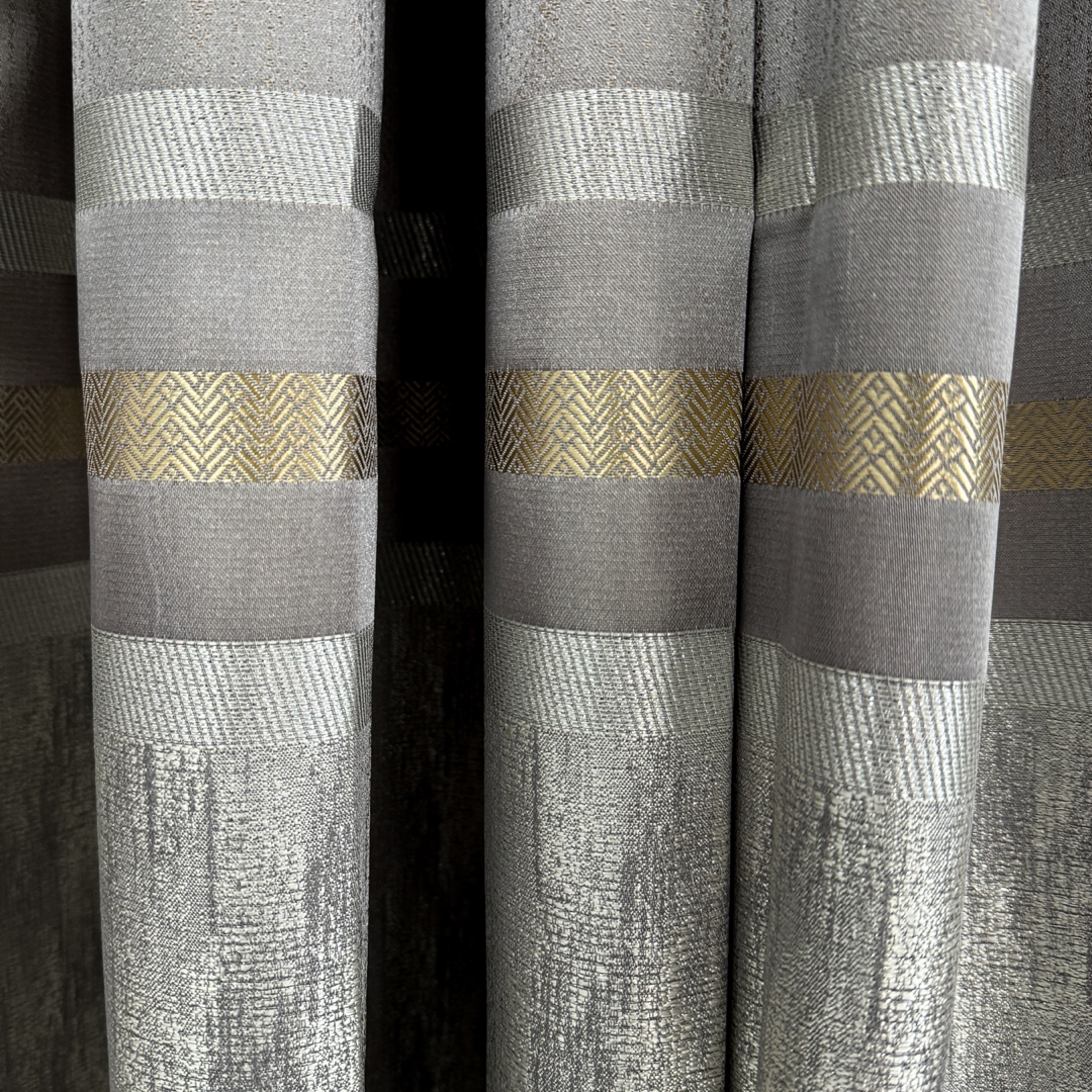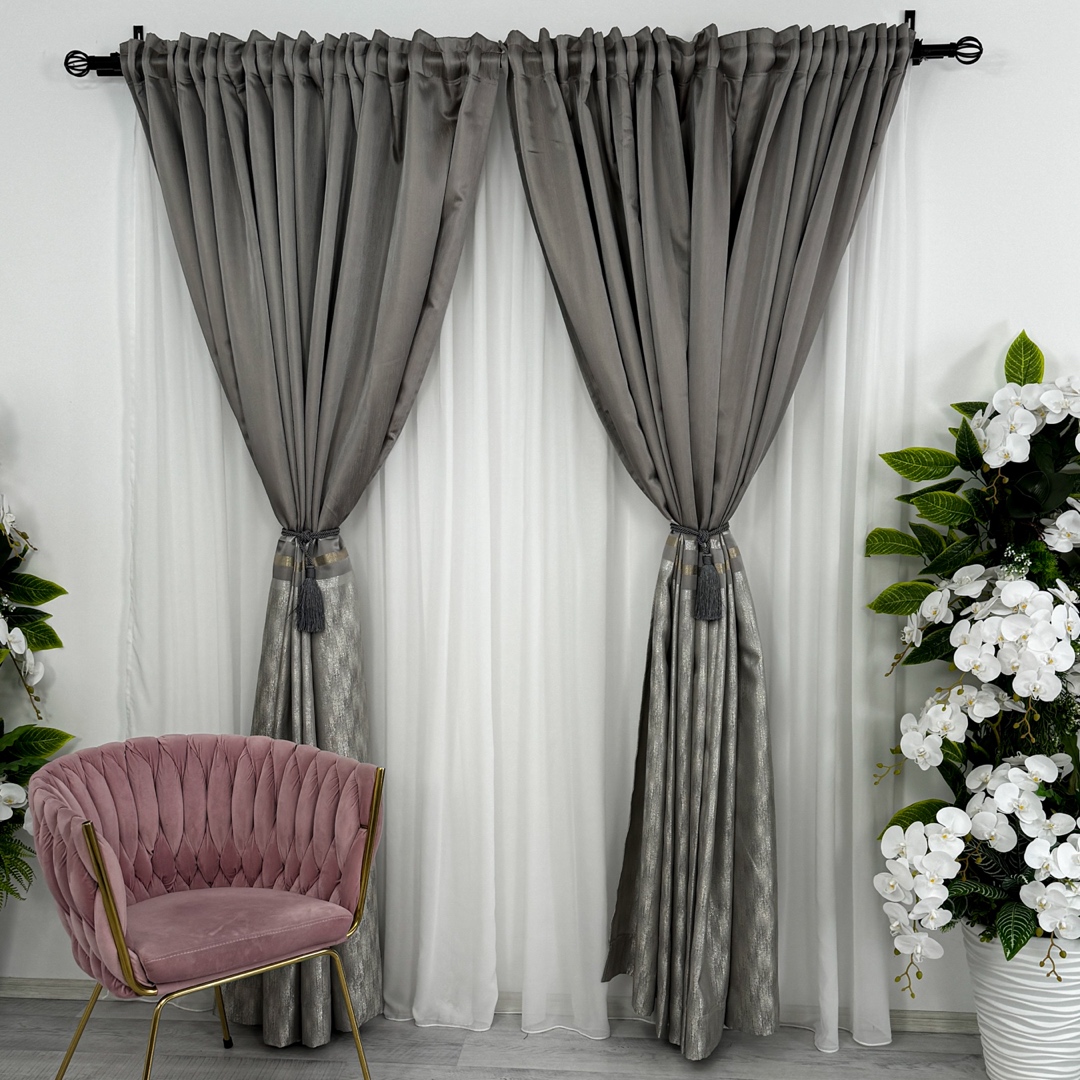 Draperiile Elite reprezinta o alegere sofisticata si luxoasa pentru orice incapere. Aceste draperii sunt confectionate dintr-un material de inalta calitate, care ofera o textura moale si bogata, aducand un sentiment de rafinament si eleganta in orice spatiu.  Ceea ce face draperiile cu adevarat remarcabile sunt detaliile aurii. Aceste insertii metalizate adauga un element de stralucire si glamour, creand un contrast elegant cu textura mata a materialului. Fie ca sunt plasate intr-un li