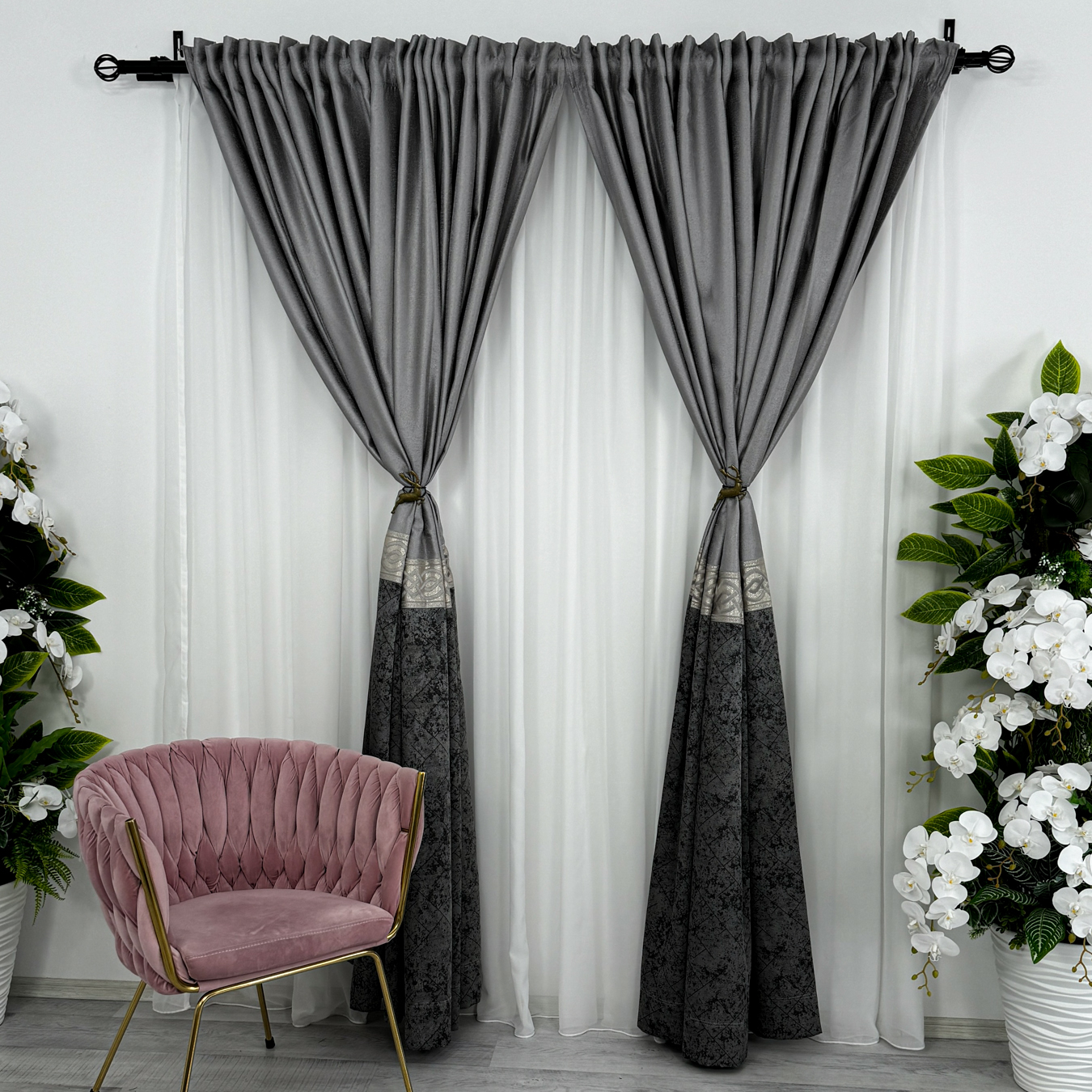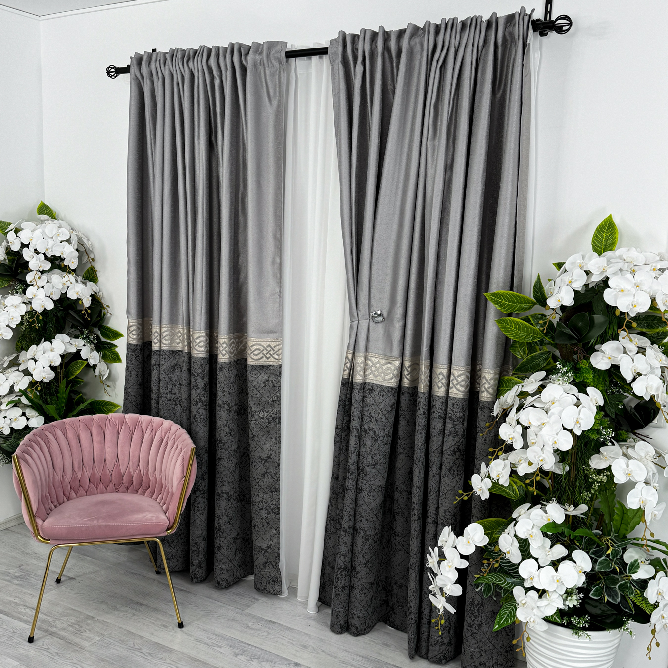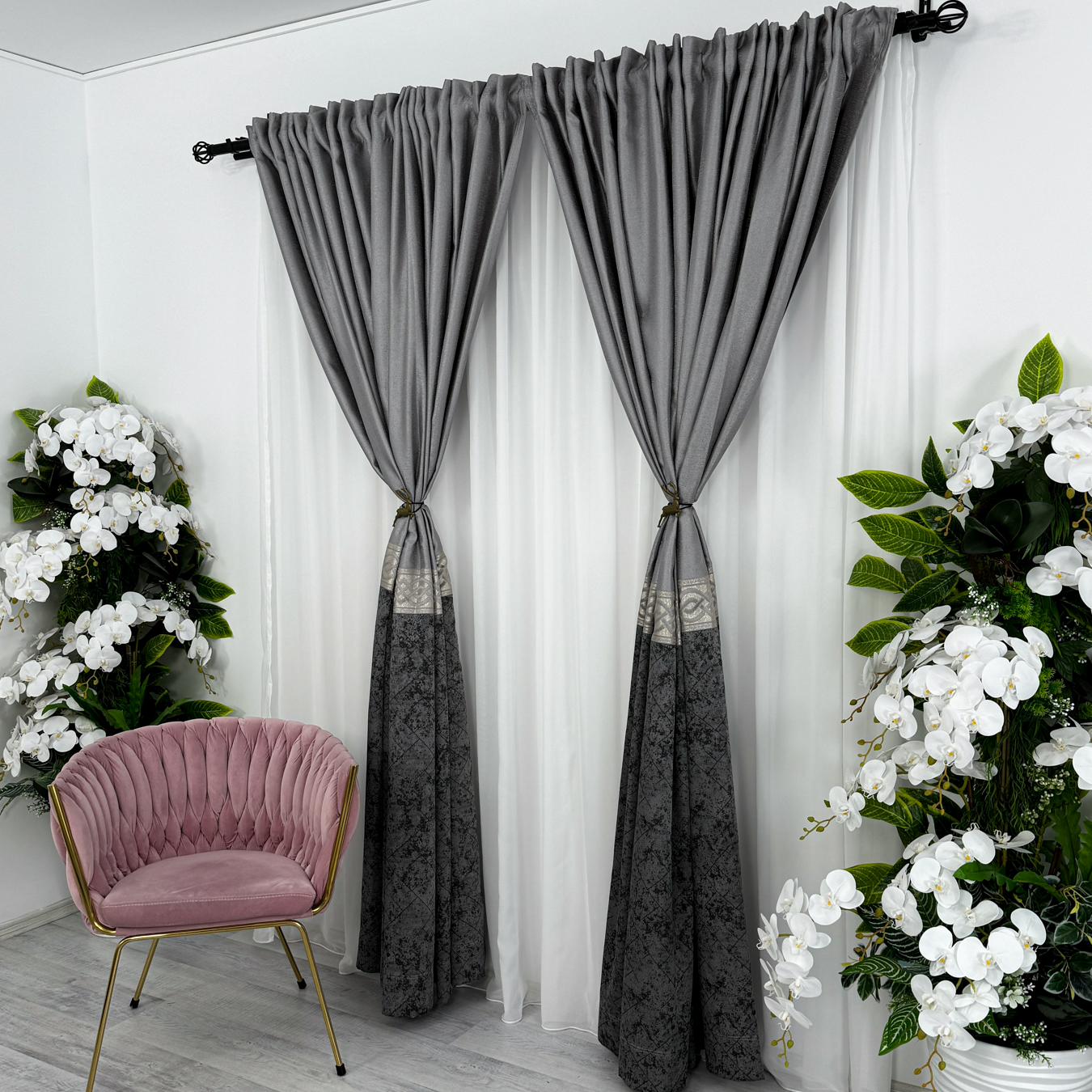 Draperiile Royal reprezinta o alegere sofisticata si luxoasa pentru orice incapere. Aceste draperii sunt confectionate dintr-un material de inalta calitate, care ofera o textura moale si bogata, aducand un sentiment de rafinament si eleganta in orice spatiu. Ceea ce face draperiile cu adevarat remarcabile sunt detaliile aurii. Aceste insertii metalizate adauga un element de stralucire si glamour, creand un contrast elegant cu textura mata a materialului. Fie ca sunt plasate intr-un li