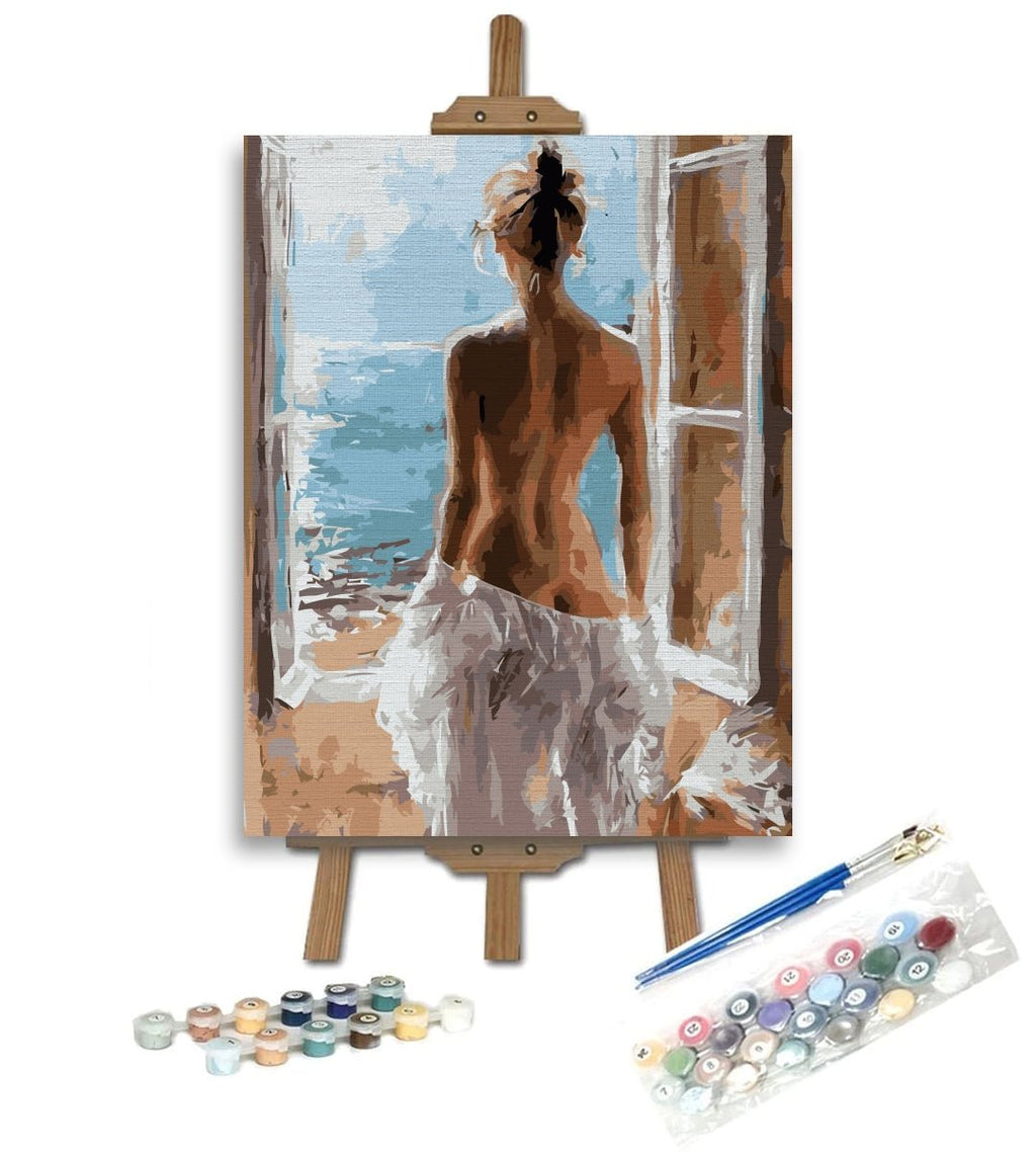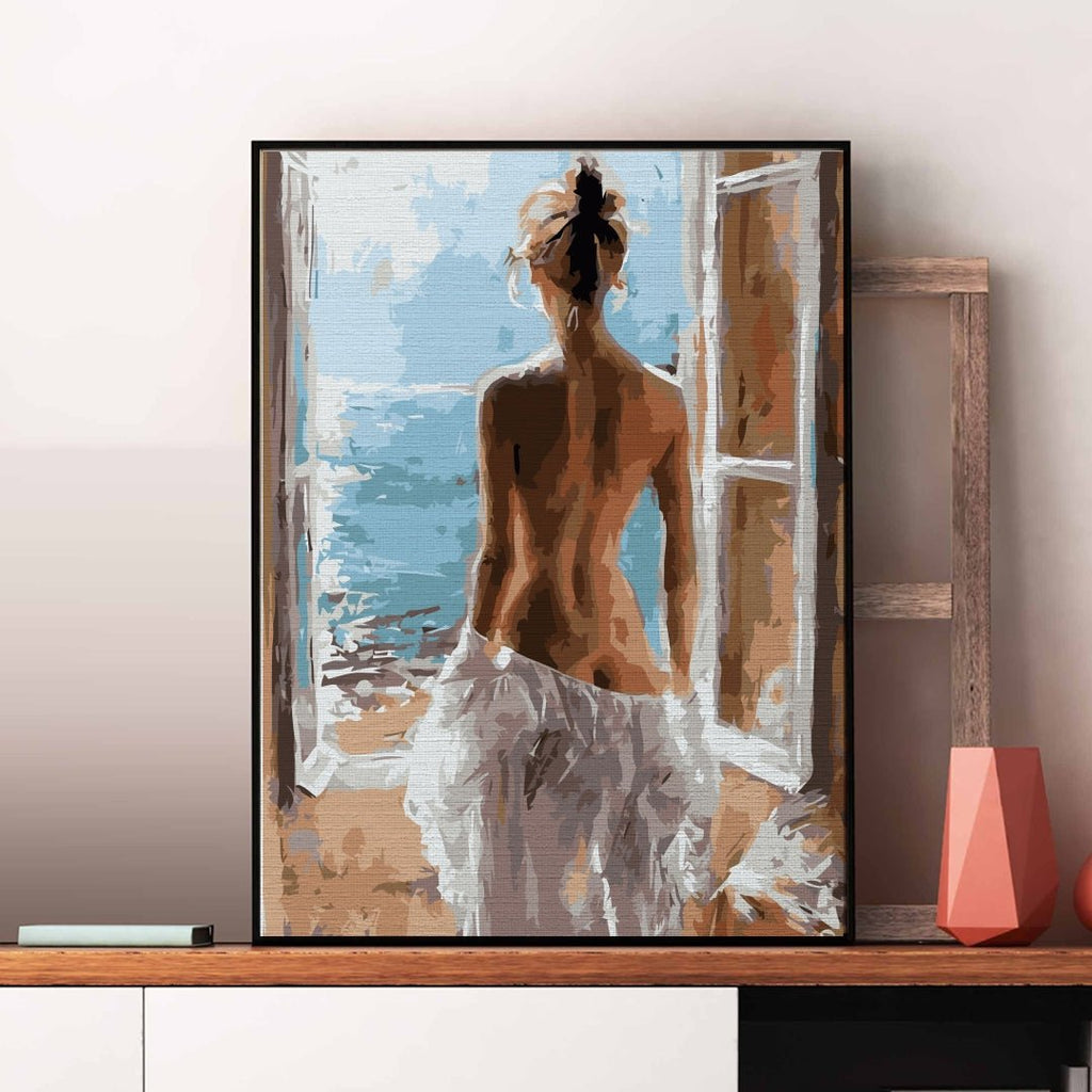 În fața măreției naturii suntem mici. Suntem goi, dezgoliți de orice, suntem una cu frumosul. Bucurați-vă de o portretizare îndrăzneață a feminității și a plajei în pictura pe numere Eager Desire.