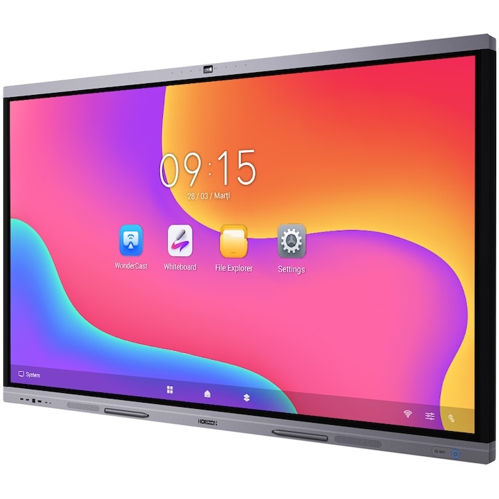 Horizon A3C 86” – platformă colaborativă 4K pentru educație modernă și business digital Modelul Horizon A3C 86” redefinește standardul pentru un display interactiv de mari dimensiuni, proiectat pentru săli de curs, amfiteatre, centre de training și spații corporate unde colaborarea și claritatea imaginii sunt esențiale. Cu diagonală de 86”, rezoluție 4K UHD și luminozitate 450 niti, acest sistem oferă o experiență vizuală puternică și uniformă. Panoul VA cu contrast 5000:1 și haze 25% asigură o lizibilitate excelentă chiar și în medii intens luminate, transformând echipamentul într-o veritabilă tablă interactivă touchscreen de nouă generație. ? Performanță hardware de top Echipat cu Android 13 (upgradabil) și procesor A764 + A554, dispozitivul dispune de: 8GB RAM 128GB stocare internă GPU Mali G610 MP4 EDLA upgrade (acces Play Store, YouTube, Chrome, Gmail, Drive, Meet etc.) Acest nivel de configurare îl recomandă drept ecran interactiv educațional capabil să ruleze aplicații complexe pentru predare digitală, prezentări multimedia și colaborare în timp real. Funcțiile Whiteboard, Browser web și WPS Office susțin activitățile didactice și transformă sistemul într-o tablă inteligentă pentru clasă, potrivită pentru implementarea de soluții digitale pentru școli. ✍️ Interactivitate avansată și experiență naturală de scriere Suprafața este protejată cu sticlă 3.2 mm, duritate 7Mohs, anti-zgârieturi și anti-reflex, iar tehnologia zero bonding îmbunătățește precizia scrierii. Sistemul suportă 45 puncte tactile simultane, fiind un veritabil ecran interactiv cu multi-touch, cu detecție pentru: deget creion obiect opac palmă Această precizie îl face ideal ca ecran interactiv pentru predare în săli de clasă dinamice sau laboratoare digitale. ? Ideal pentru educație și instituții publice Dispozitivul poate fi utilizat ca: ecran interactiv pentru școală instrument modern pentru ecran interactiv pentru învățământ soluție completă pentru dotări prin programe PNRR Integrarea sa în infrastructura de echipamente IT pentru educație asigură digitalizarea completă a procesului de predare. Disponibil pentru ecran interactiv ofertă instituții publice, cu documentație și suport dedicat achizițiilor. ? Performanță audio-video pentru mediul profesional Camera și microfonul integrate, împreună cu sistemul audio 2x20W + subwoofer 25W, oferă claritate excelentă pentru: ecran interactiv pentru training utilizare ca monitor interactiv în boardroom sesiuni online și prezentări prin ecran interactiv pentru birou WiFi 6 + hotspot, Bluetooth 5.1 și NFC (Screen Mirroring) facilitează partajarea rapidă a conținutului. ? Conectivitate extinsă și flexibilitate maximă 1x VGA 1x DP 1.2 3x HDMI (1 frontal, 2 spate) + HDMI Out 2x USB-C (65W frontal / 15W spate) 4x USB-A 3.0 3x USB Touch 2x LAN (in/out, Gigabit) OPS slot RS232C Line-In / Line-Out / Mic-In SPDIF Out VESA 800x600 pentru montaj stabil pe perete sau suport mobil. ? Specificații esențiale Diagonală: 86” Rezoluție: 3840 × 2160 Luminozitate: 450 niti RAM: 8GB Stocare: 128GB Touch: 45 puncte Audio: 2x20W + 25W subwoofer Consum tipic: 335W Consum max: ≤450W Greutate: 65.13 kg Dimensiuni: 1960.5 × 1173.7 × 82.5 mm Durată viață: 100.000 ore Garanție: 5 ani ? Achiziție prin unitate protejată Poate fi livrat prin ecran interactiv achiziție prin unitate protejată, în calitate de ecran interactiv furnizor unitate protejată, oferind posibilitatea optimizării bugetare pentru instituții și companii. Disponibil pentru cumpără ecran interactiv online, cu opțiuni competitive de ecran interactiv preț bun pentru proiecte educaționale și corporate. Display-uri interactive la Prețuri Atractive | Design-uri moderne și calitate superioară! Adăugați acum în coș display-urile de la Horus Center la un raport calitate-preț excelent.Horus Center - magazinul tău de birotică și papetărie online unde calitatea întâlnește accesibilitatea!