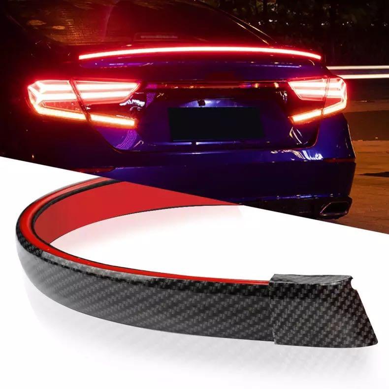Eleron imitatie carbon cu banda LED stop, frana suplimentara Eleron imitatie Carbon cu banda led stop frana suplimentara pentru autoturisme. Lampa in forma de banda LED este flexibila, autoadeziva si se monteaza la exterior sau interior. Rezistenta la temperaturi ridicate atinse vara de 70° la suprafata caroseriei. Lungime: 120cm (poate fi taiata) Tensiune de lucru: 12V Material: Poliuretan Putere maxima: 28W Culoare lumina: rosu Aplicare: banda autoadeziva, existenta pe produs Functii: Pozitie, Stop frana Montaj: Produsul poate fi montat atat la exterior ca si eleron portbagaj iluminat cat si la interior ca si lampa de frana pe luneta. Produsul se va conecta la intalatia masinii utilizand instructiunile din manualul de conectare iar pentru aceasta trebuie sa mergeti la un atelier specializat. Conectare frana suplimentara: Fir Rosu = Pozitie, rosu pal Fir Galben = Franare, rosu intens