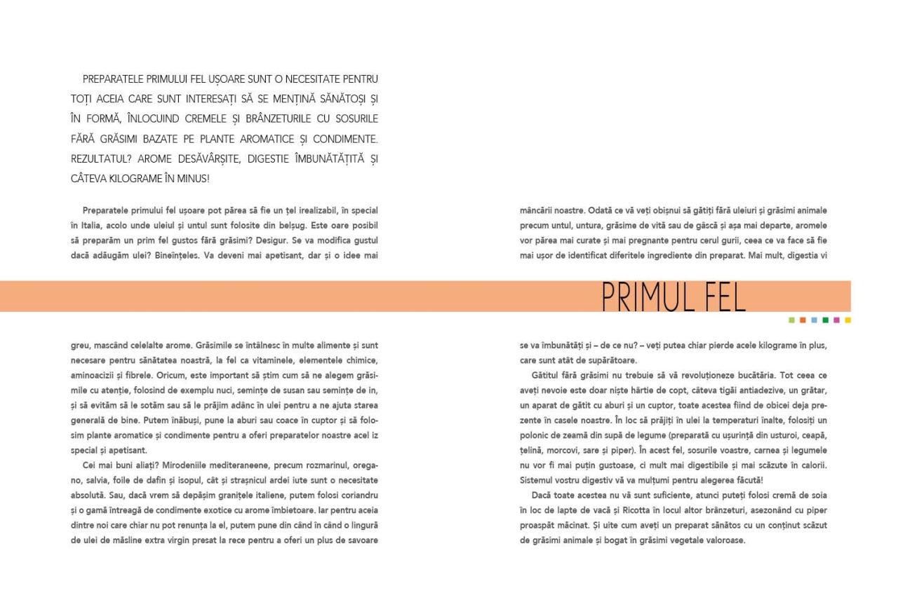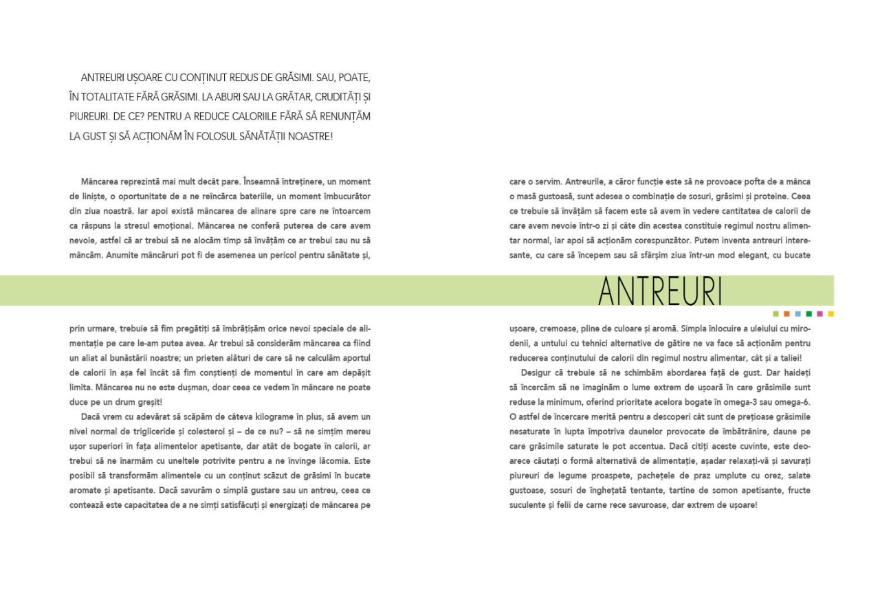 85 de rețete Natural, cu ingrediente de sezon: rețete gustoase și o nesfârșită creativitate și fantezie se adună într-o dietă sănătoasă, echilibrată, în care cantitatea de grăsime este redusă fără a sacrifica gustul. Specificații Nr. pagini: 224 Mărime: 26x19 cm