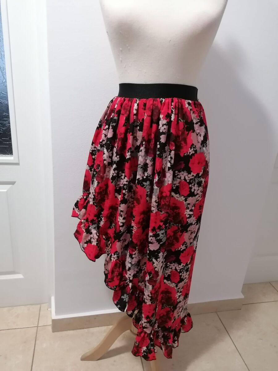 Fusta dama asimetrica Engros, cu imprimeu, volanase, elastic in talie