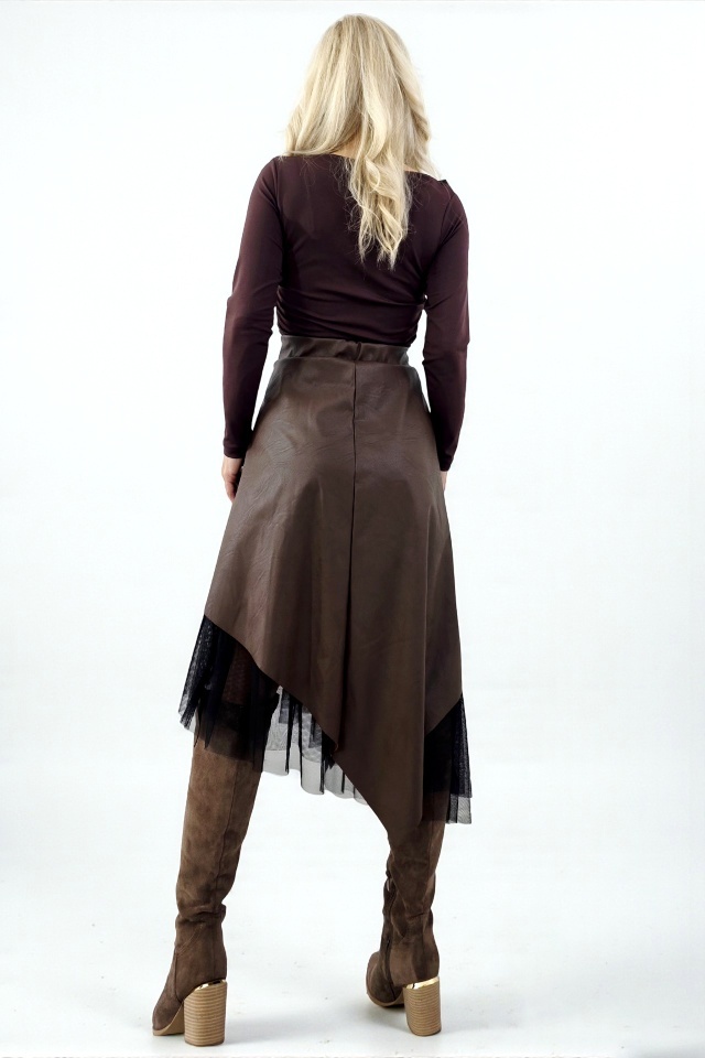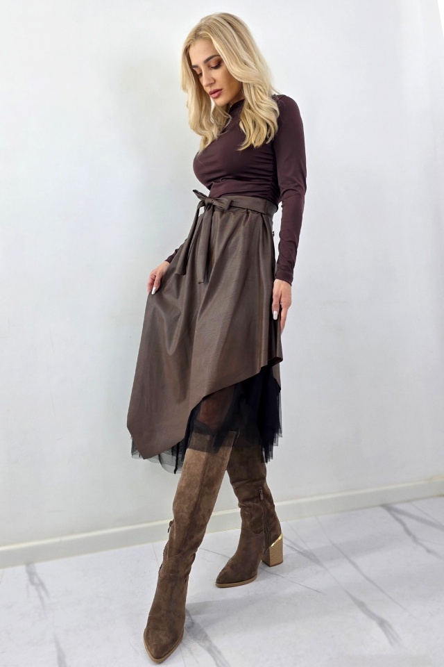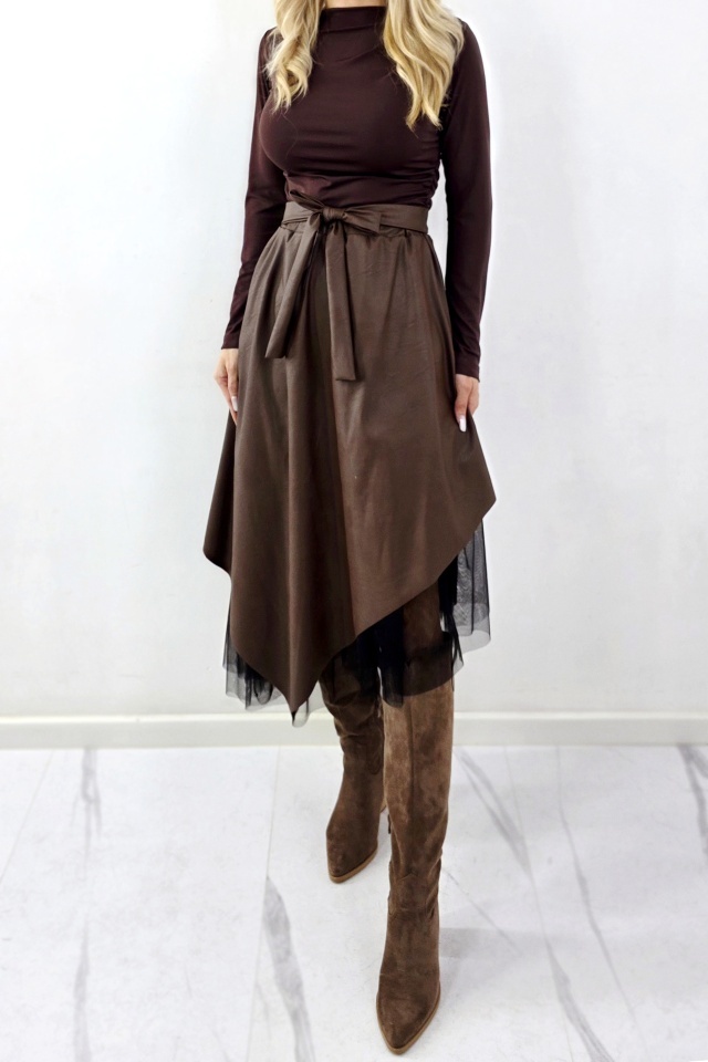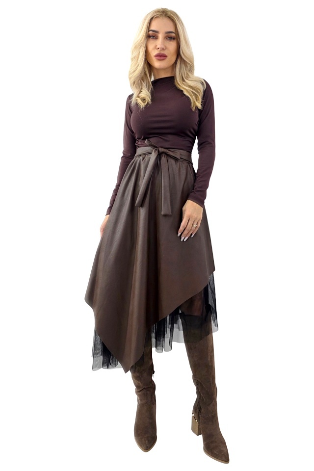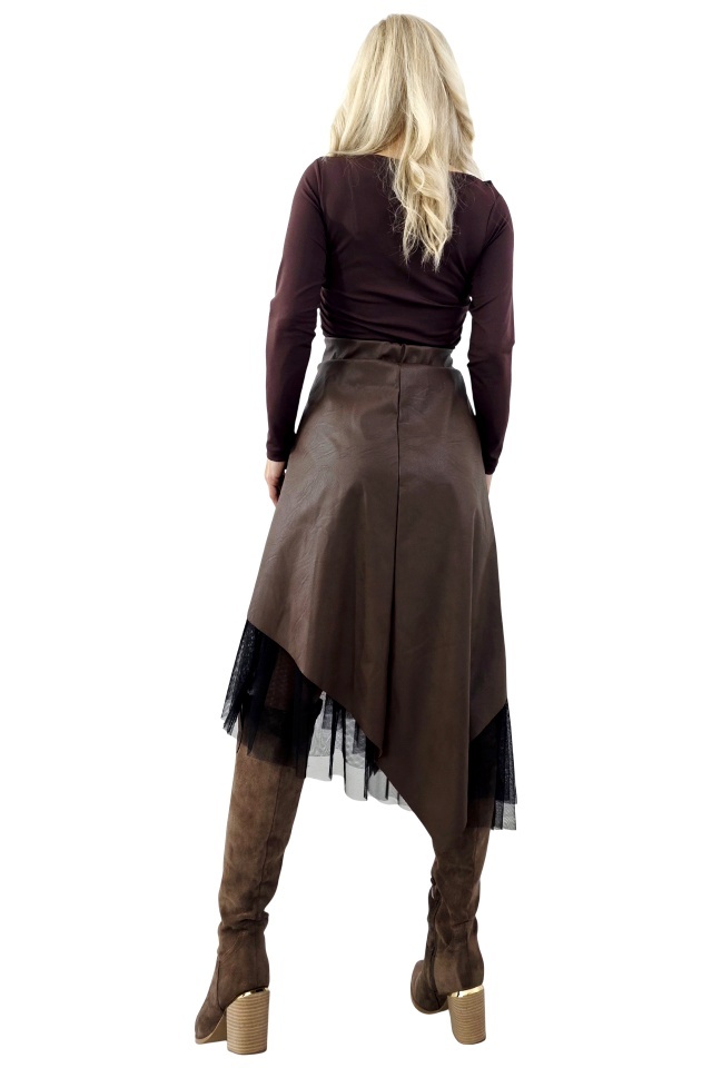 Florentina – contrastul perfect între forță și finețe! Fusta Florentina este o piesă ce atrage privirea prin contrastul perfect dintre textura pielii ecologice și delicatețea tullle-ului. Cu o croială lungă și asimetrică, oferă un efect fluid și elegant, punând în valoare silueta prin mișcare și detaliu. Materialul din piele ecologică moale oferă un aspect modern și rafinat, în timp ce garnitura din tulle adaugă o notă romantică, ușor jucăușă, ce transformă fusta într-o alegere ideală pentru ținutele cu personalitate. Cordonul cusut, confecționat din același material, permite legarea personalizată, fie într-un nod lejer, fie într-o fundă elegantă, în funcție de stilul dorit. Fusta nu are sistem de închidere, însă rejanșa elastică din talie asigură o potrivire confortabilă și adaptabilă. Florentina este o piesă statement care combină rafinamentul urban cu detaliul artistic, perfectă pentru evenimente, apariții casual chic sau seri speciale. Caracteristici fusta: - Material din piele ecologică moale, cu finisaj elegant - Croială lungă și asimetrică, ce oferă fluiditate și mișcare - Garnitură din tulle fin, cu aspect romantic și delicat - Cordon cusut ce poate fi legat în mod personalizat - Fără sistem de închidere, pentru un design curat și modern - Rejansă elastică în talie, ce oferă confort și adaptabilitate - Versatilă și expresivă, ideală pentru ținute moderne și feminine Marime universala potrivita pentru masura S sau M Compozitie material: 76 % vascoza; 19% poliester; 5% elastan; Eticheta produsului conține informații esențiale referitoare la întreținerea și spălarea corectă a articolelor vestimentare! Imaginile Fashionforyou au caracter informativ, iar nuanta, tonul si intensitatea culorii pot varia in functie de monitor/ecran telefon.