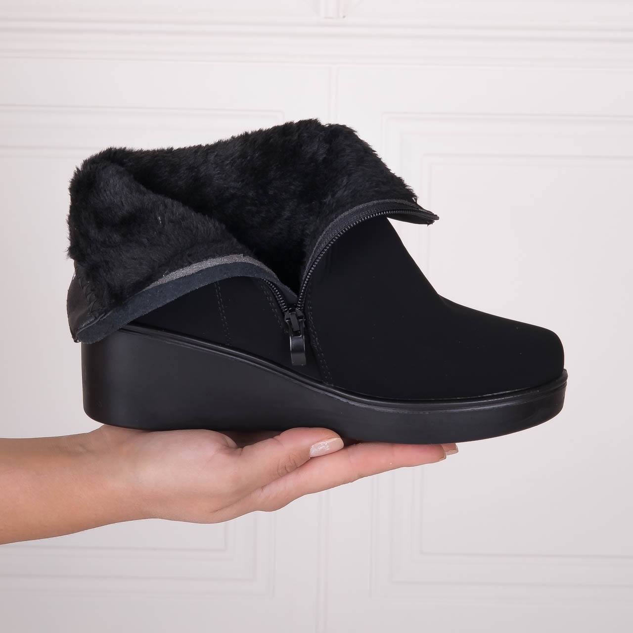 Botine dama Negre din Piele Ecologica Intoarsa Oranda