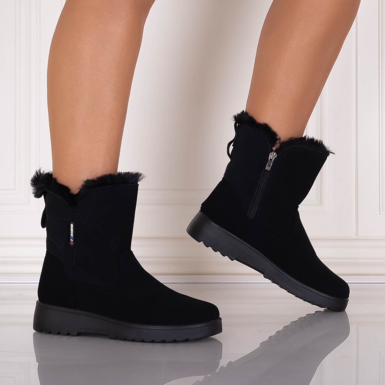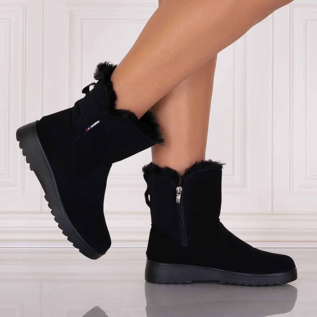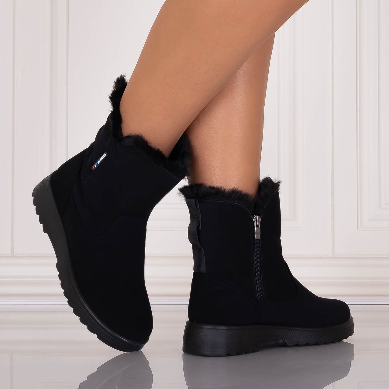 Ghete Dama Imblanite Negre din Piele Ecologica Intoarsa Sallia