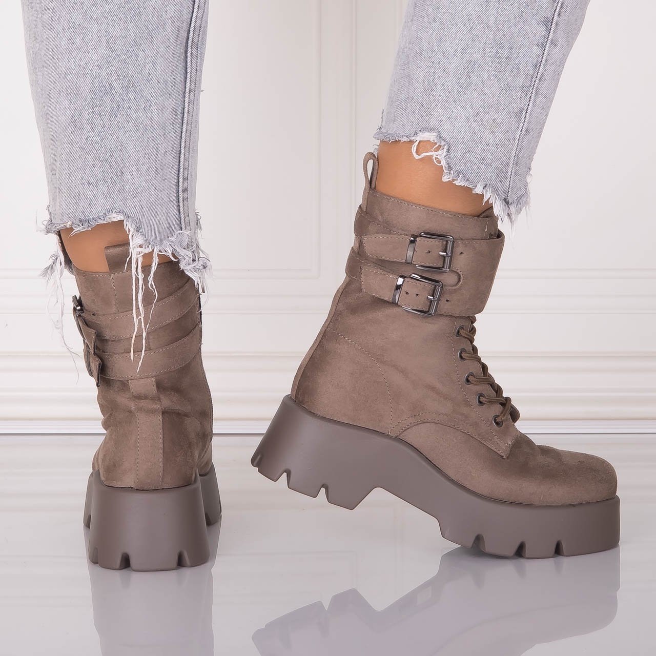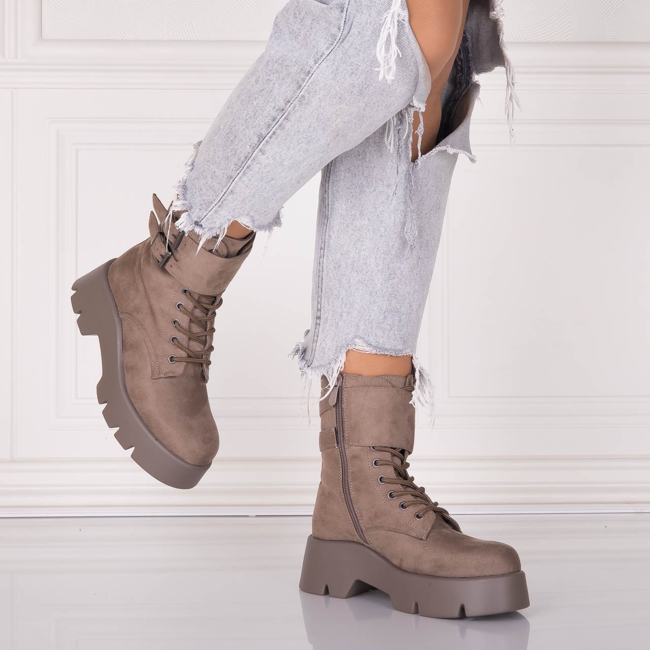 Ghete dama cu siret si toc Bej din piele ecologica Mars