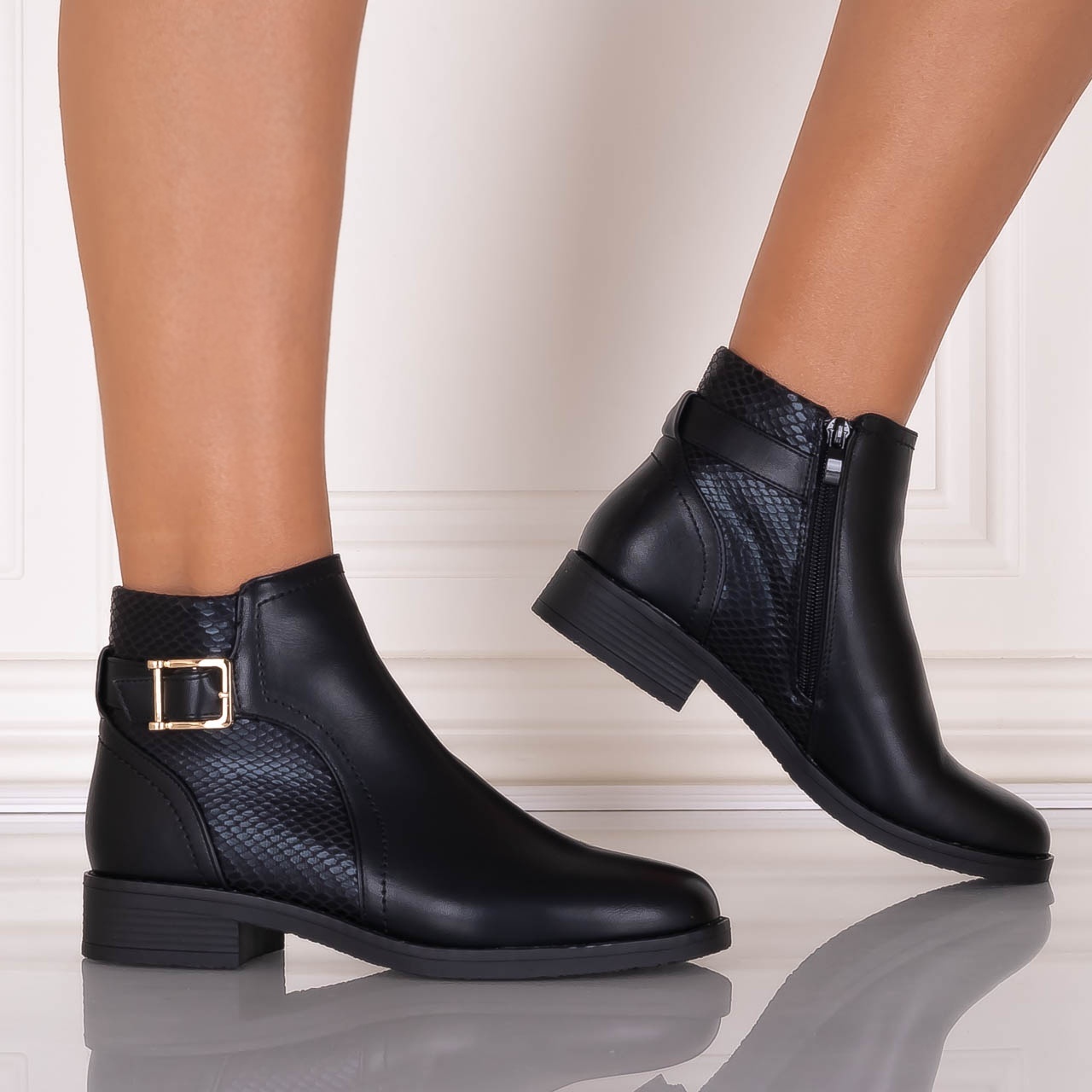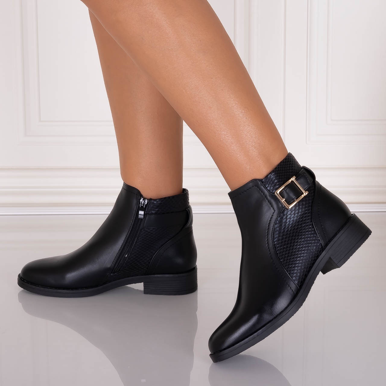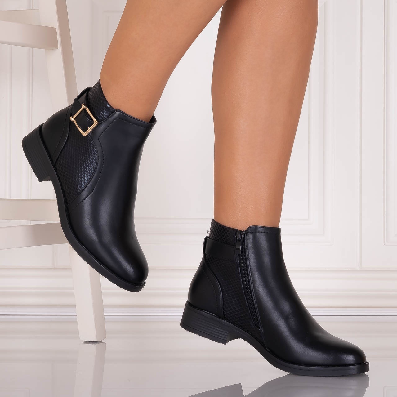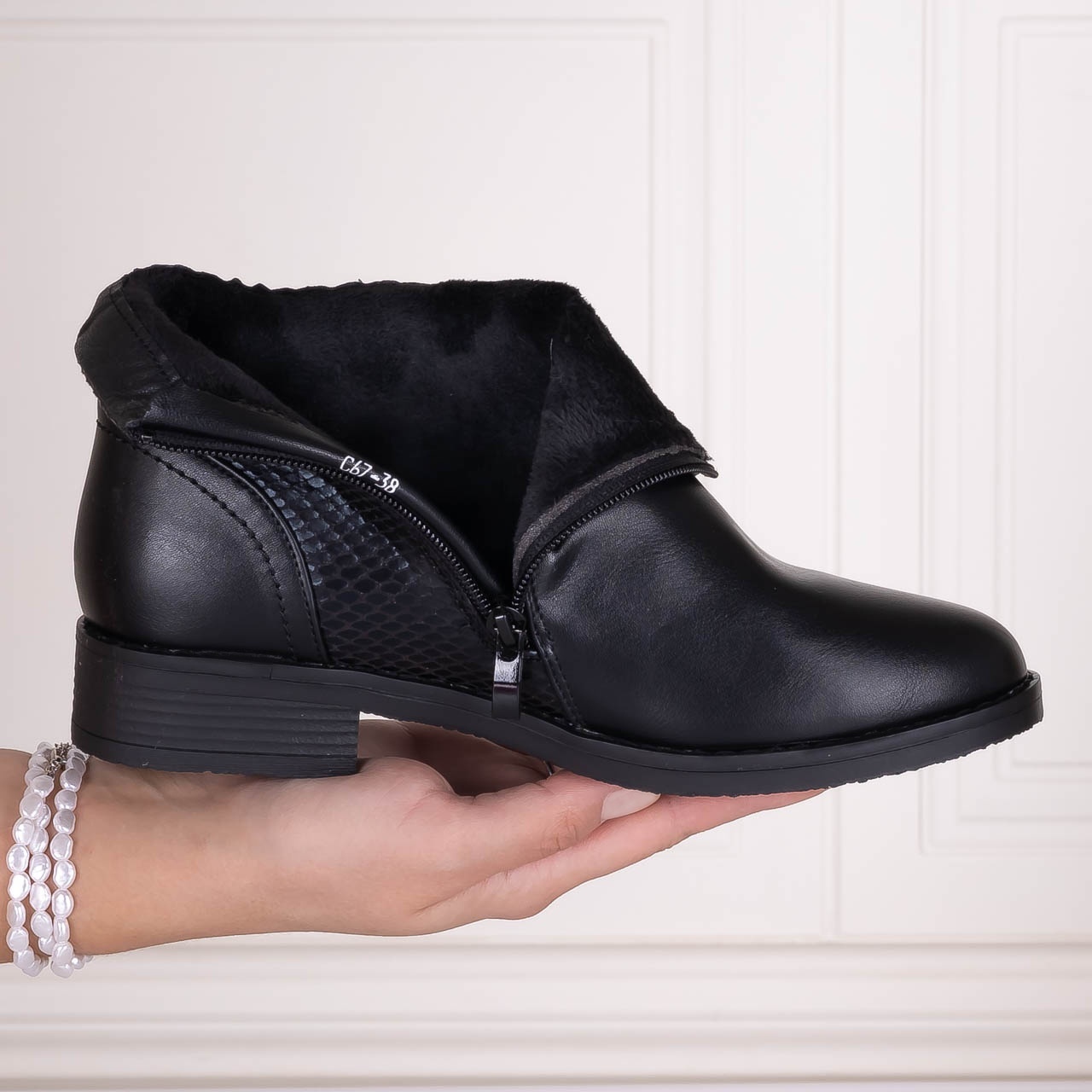 Botine dama Negre din Piele Ecologica Intoarsa Clyra