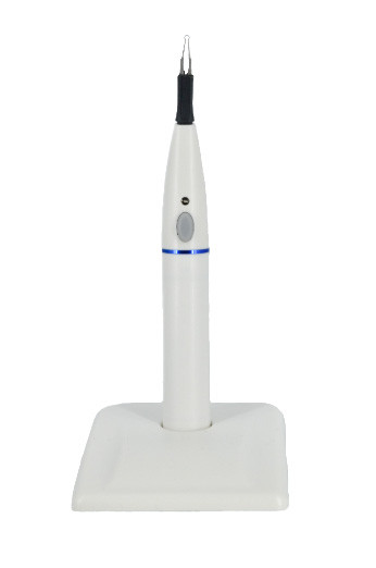 Aparat pentru inlaturarea rapida si sigura a excesului de gutaperca. Caracteristici: - este foarte usor de utilizat. Piesa de mana are un buton pentru incalzire rapida a varfului de taiere, care se apasa dupa pozitionarea aparatului. Dupa eliberarea butonului de incalzire, varful de taiere se va raci in doar cateva secunde. - piesa de mana este fara fir - varful de taiere poate fi sterilizat si poate fi utilizat in mod repetat Detalii tehnice: - Baterie: 1.2V 2400mAh. Incarcator tensiune: 220-240V, 50-60Hz. - Putere: 2.5W. Mod de prezentare: Piesa de mana + supportul de incarcare, 4 varfuri de taiere autoclavabile