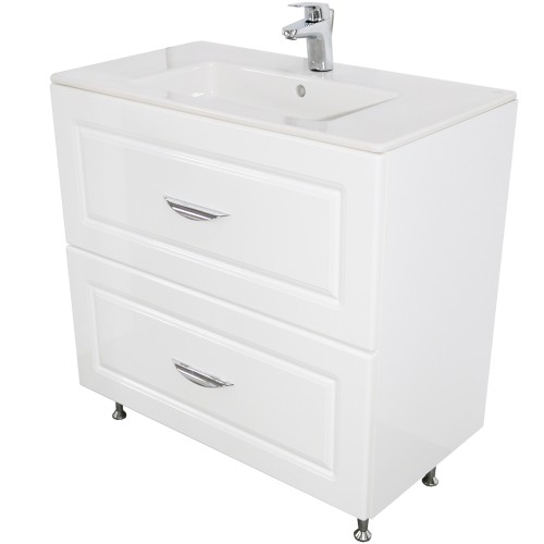 Detalii: Carcasa din PAL alb si usi din MDF infoliat alb. Masca de chiuveta cu lavoar inclus cu dimensiunile 81 x 45 x 83 cm *Bateria nu este inclusa in pret dar se poate achizitiona separat.