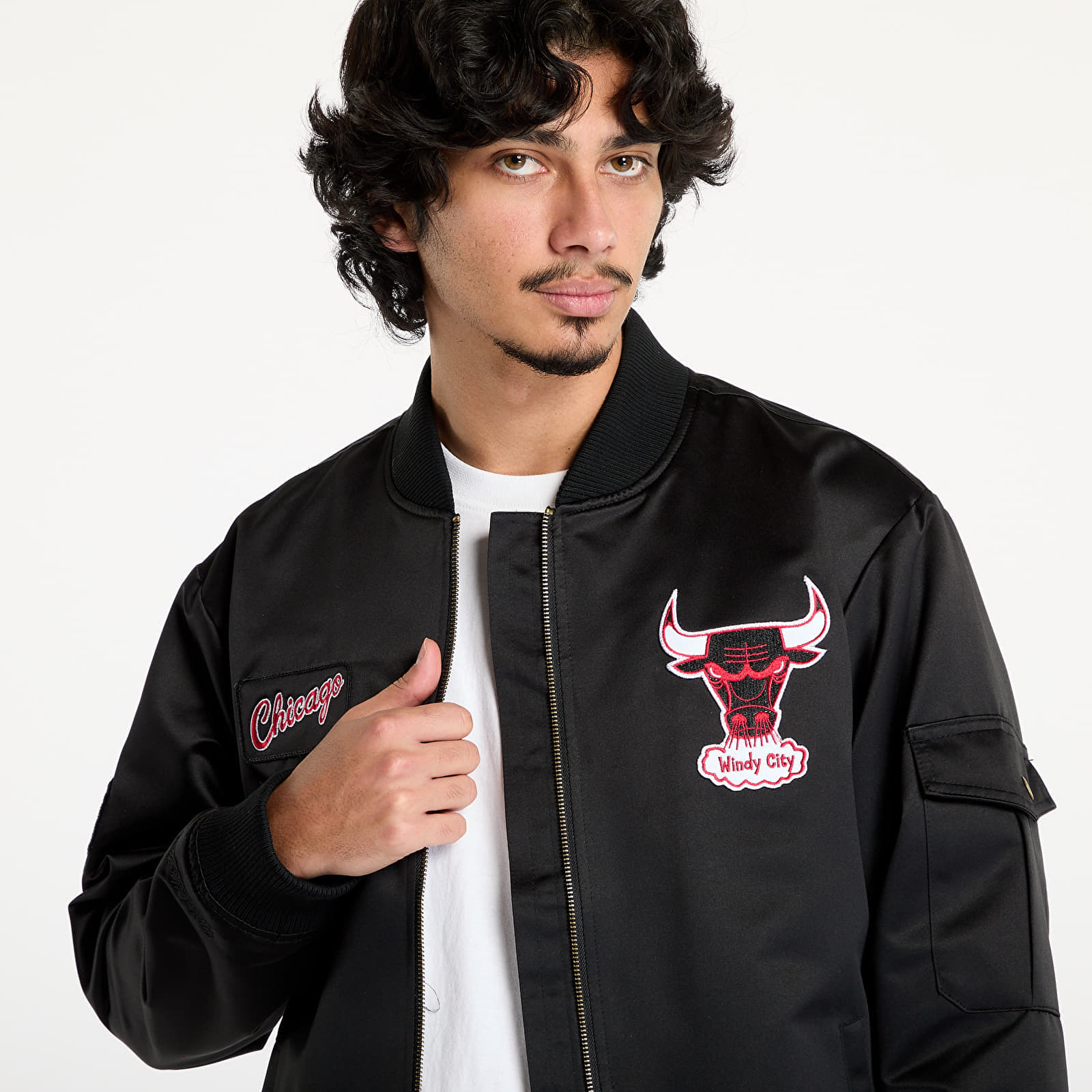 Jacheta Mitchell & Ness NBA Team Leader Satin Vintage Logo Bulls Bomber Black pentru 889 lei. Cod produs: JK8095-CBUBLCK, material: 100% Poliester