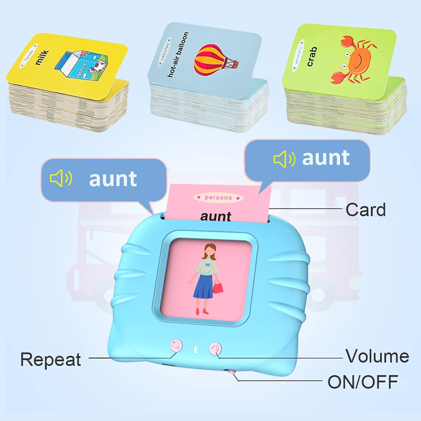 Monitor educativ audio pentru invatarea limbii engleze Culori disponibile: roz si albastru Cartela de iluminare pentru invatare bilingva Carduri audio pentru copii Material: ABS Tensiune: 5V 270mA Rata de putere:1W Baterie Li-ion incorporata: 300 mAh Timp de lucru: 4 ore Incarcare - Cablu USB Carduri 112 bucati fata-verso 224 de imagini din diferite domenii