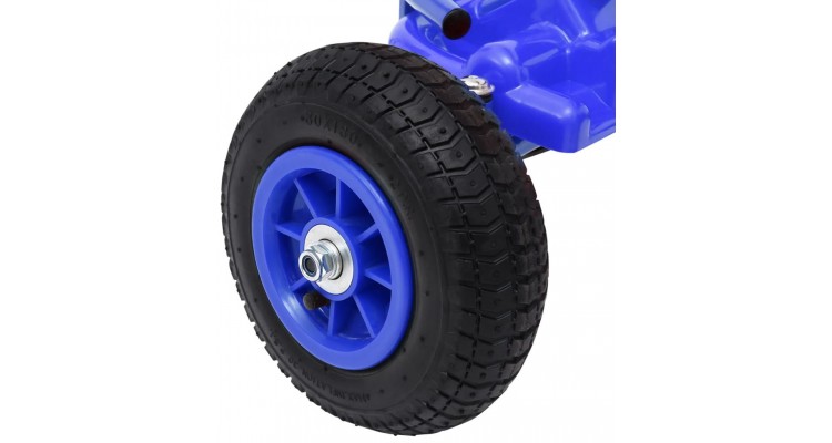Culoare: Albastru si negru Material: Fier si plastic Dimensiuni: 90 x 50 x 51 cm (L x l x i) Cu roti pneumatice din cauciuc Dimensiuni roata (fata): 7,7” (19,6 cm) Dimensiuni roata (spate): 8,5” (21,6 cm) Cu frane de mana Greutate maxima suportata: 30 kg AVERTISMENT: Contraindicat copiilor mai mici de 36 de luni. AVERTISMENT: A se folosi sub directa supraveghere a unei persoane adulte. AVERTISMENT: A se utiliza cu echipament de protectie. A nu se utiliza in trafic. Copiii dvs. se vor distra de minune plimbandu-se peste tot cu aceasta masinuta kart cu pedale. Are un aspect modern si poate fi operat foarte usor de copii. Scaunul mare este foarte confortabil. Multumita rotilor pneumatice de cauciuc, kartul este usor de manevrat inainte si inapoi, iar mersul este lin si stabil. Franele de mana pot fi utilizate pentru a opri kartul in siguranta. Acest kart este recomandat pentru copii cu varsta de peste 3 ani.