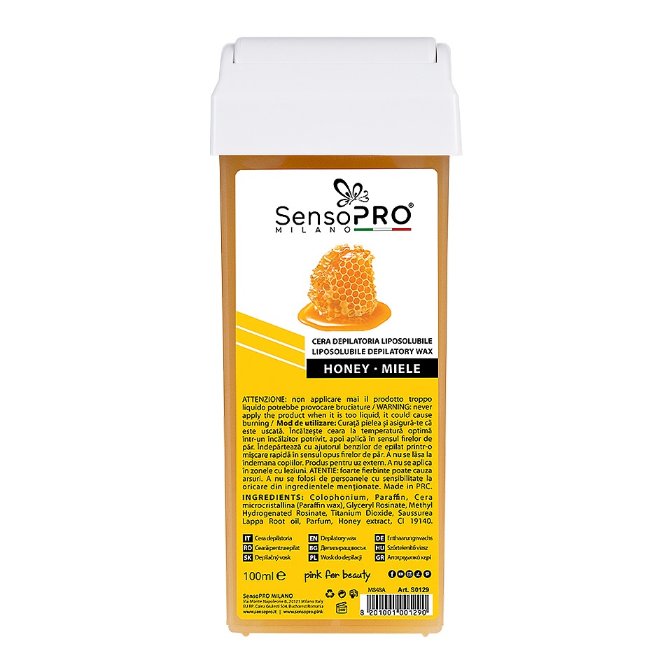Kit Epilare Ceara Consumabile SensoPRO Tea Time contine produse necesare pentru o sedinta de epilare rapida si eficienta. Este potrivit atat pentru saloanele de infrumusetare, cat si pentru uz personal. Ceara de unica folosinta este usor de folosit, aceasta venind intr-un recipient cu aplicator. Astfel, produsul va fi intins uniform pe piele. Se poate folosi pentru cosmetizare sprancene, epilare mustata, axila, maini, picioare, inclusiv zona inghinala. Kit Epilare Ceara Consumabile SensoPRO Tea Time contine urmatoarele produse: - 2 x Rezerva Ceara Epilat Unica Folosinta SensoPRO Milano, Ceai Verde si Lamaie: este potrivita tuturor tipurilor de piele, inclusiv pentru cea sensibila. - 2 x Rezerva Ceara Epilat Unica Folosinta SensoPRO Milano, Red Velvet: asigura o epilare eficienta, sigura si fara a crea senzatia de disconfort. - 1 x Rezerva Ceara Epilat Unica Folosinta SensoPRO Milano, Miere de Albine: elimina parul nedorit in mod delicat si este potrivita pentru toate zonele corpului. Rezerve Ceara- nuantele sunt in functie de stocul disponibil! - 1 x Benzi Epilat Hartie fara Fibre SensoPRO Milano, 50buc - 1 x Ulei dupa Epilare cu Musetel SensoPRO Milano, 100ml - aroma in functie de stocul disponibil *Ambalarea tip cadou a kitului este momentan indisponibila. Mod de utilizare: ✅ 1. Incepeti prin curatarea pielii cu Lotiune inainte de Epilare SensoPRO Milano . Asigurati-va ca pielea este complet uscata inainte de aplicarea cerii. ✅ 2. Introduceti rezerva de ceara intr-un incalzitor potrivit si apoi conectati incalzitorul la priza. ✅ 3. Asteptati 20-30 de minute pentru ca ceara sa fie topita complet (in cazul incalzitoarelor fara suport, este recomandata deconectarea de la priza in momentul aplicarii cerii pe piele). Rezerva de ceara contine un roll-on detasabil. Inainte de aplicare, asigurati-va ca acest roll-on este fixat bine. Distribuiti uniform ceara pe roll-on cu ajutorul unei benzi de epilare, trecand de 3-4 ori cu roll-on-ul peste aceasta pentru a asigura o aplicare uniforma. ✅ 4. Asigurati-va ca temperatura cerii este confortabila pentru piele. Puteti face un test pe o mica portiune a pielii pentru a evita arsurile. ✅ 5. Intindeti ceara pe zona dorita în directia de crestere a firelor de par, aplicand un strat subțire și uniform pentru a asigura o epilare eficientă (in cazul in care ceara a inceput sa se raceasca/intareasca, reconectati incalzitorul la priza pentru cateva minute pana cand ceara ajunge la temperatura dorita). ✅ 6. Aplicati imediat o banda de epilare deasupra cerii (lasand loc de prindere). Presati usor si apoi trageti banda rapid in sens invers cresterii firelor de par. Repetati acest proces pe toate portiunile de piele pe care doriti sa le epilati. ✅ 7. Aplicati Ulei dupa Epilare pentru indepartarea resturilor de ceară și pentru a calma pielea. Evitati expunerea la soare sau la bai fierbinti timp de cateva ore dupa epilare pentru a preveni iritatiile suplimentare. Ceara se foloseste exclusiv pentru uz extern. A nu se aplica pe piele sensibila, afectata de leziuni sau pe zone sensibile. A nu se lasa la indemana copiilor . A se evita supraincalzirea. Se recomanda incalzirea precauta. ATENTIE: foarte fierbinte, poate cauza arsuri! Conditii de pastrare: Nu lasati cartusul de ceara deschis si nefolosit pentru perioade mari de timp. A se pastra in spatii reci, uscate si aerisite, ferite de lumina directa a soarelui, a umezelii , a materialelor cu potential agresiv, eventuale lovituri, zgarieturi sau deformari.