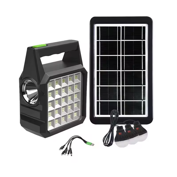 Kit solar LED GD-105 LED Lanterna multifunctionala cu panou solar Utilizarea lampilor solare in locul celor clasice alimentate la reteaua electrica ofera o serie de beneficii semnificative, atat pentru utilizatori cat si pentru mediu. Eficienta Energetica si Reducerea Costurilor - Lampile solare convertesc energia solara direct in lumina, eliminand necesitatea consumului de electricitate din surse conventionale. Aceasta inseamna o reducere semnificativa a facturilor la energie electrica pentru utilizatori, oferind un avantaj economic pe termen lung. Instalare Usoara si Flexibilitate in Plasare - Spre deosebire de lampile clasice, care necesita conectare la reteaua electrica, lampile solare sunt extrem de usor de instalat, neavand nevoie de cabluri sau priza. Acest lucru permite plasarea lor in diverse locatii, inclusiv in zone indepartate sau greu accesibile. Durabilitate si Siguranta - Lampile solare sunt proiectate sa fie durabile si rezistente la conditii meteorologice nefavorabile, cum ar fi ploaia sau zapada. De asemenea, absenta cablurilor reduce riscul de accidente electrice, facandu-le o optiune sigura pentru iluminatul exterior. Impact Ecologic Redus - Adoptarea lampilor solare sustine eforturile globale de combatere a schimbarilor climatice, promovand un viitor mai sustenabil. Autonomie si Performanta - Lampile solare dispun de baterii care stocheaza energia solara, oferind iluminat pe timp de noapte sau in zilele noroase, fara intreruperi. Tehnologia moderna asigura o autonomie extinsa si o eficienta ridicata in conversia energiei solare. Design Variat si Atractiv - Gama larga de modele disponibile pe piata permite utilizatorilor sa aleaga lampile solare care se potrivesc cel mai bine cu estetica spatiului exterior, fie ca este vorba de gradini, alei, parcuri sau alte zone. Independenta Energetica - Utilizarea lampilor solare ii face pe utilizatori mai putin dependenti de reteaua electrica si de fluctuatiile preturilor la energie, oferindu-le o mai mare control si stabilitate financiara. Statia solara este un kit autonom si ecologic pentru organizarea luminii si reincarcarea gadgetului in absenta curentului electric. Panoul solar va va ajuta sa obtineti o sursa de lumina si sa va incarcati dispozitivele oriunde v-ati afla. Obtii o sursa autonoma de energie in orice conditii. O lanterna LED de mana cu reflector si 3 becuri este o alternativa sigura si ecologica la lumanari atunci cand nu exista sursa de alimentare si cu cablul USB universal iti poti incarca telefonul mobil pentru a ramane conectat. Caracteristici: Puterea spotului LED: 80W (lumina calda/alba) Putere lampa LED: 20 W putere panou solar: 3,8 W Tensiune de iesire conector USB: 5V timp de lucru: 12-30 ore Lanterna este echipata cu un maner de transport.