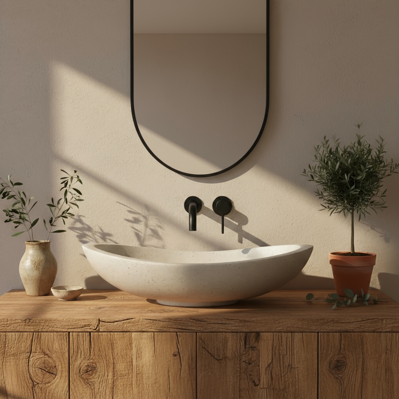 Lavoarul de blat Leona este o propunere pentru cei care doresc să îmbine eleganța cu modernitatea în baia lor. Suprafața sa impresionează prin structura profundă de piatră, care oferă interiorului un caracter unic. Este realizat din materialul inovator Artificial Stone (piatră compozită artificială), care îmbină estetica pietrei naturale cu durabilitatea și funcționalitatea soluțiilor moderne. Se remarcă prin rezistență la deteriorări mecanice, temperaturi ridicate și umiditate. Interiorul neted al vasului garantează ușurință la curățare, iar textura exterioară brută de piatră adaugă caracter și un farmec deosebit interiorului. Este o alegere pentru cei care caută un element de baie elegant și de design, la fel de practic pe cât de spectaculos. Metodă de montaj: De blat Material: Artificial Stone (piatră compozită) Culoare: Bej, Imitație piatră Finisaj: Mat Lungime: 465 Latime : 370 Inalime: 125 Adâncime: 80 Formă: Oval