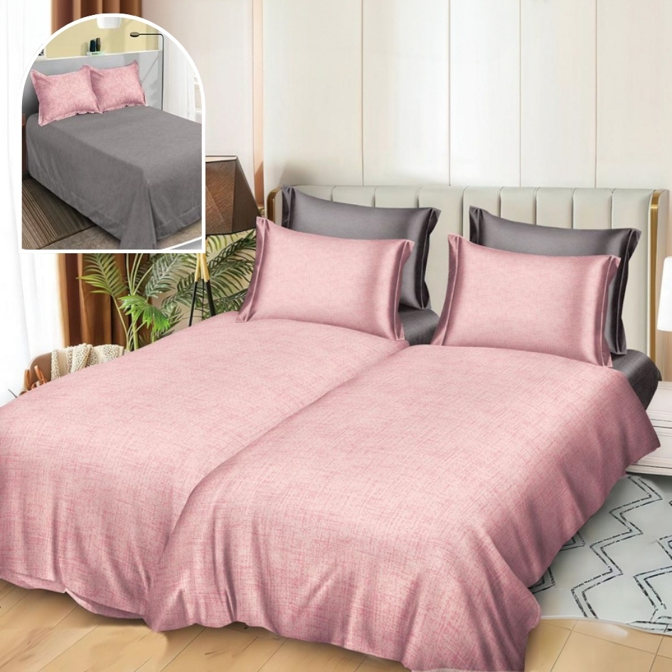 Lenjerie de Pat, 7 Piese, Bumbac Satinat Superior, cu 2 Pilote, Roz, Gri, Uni