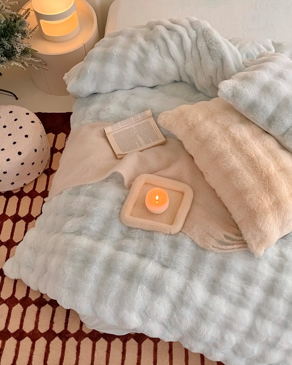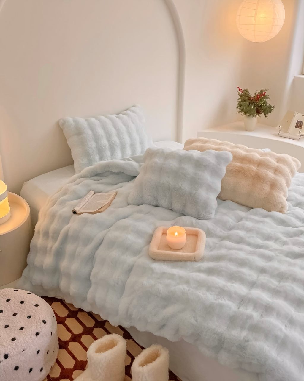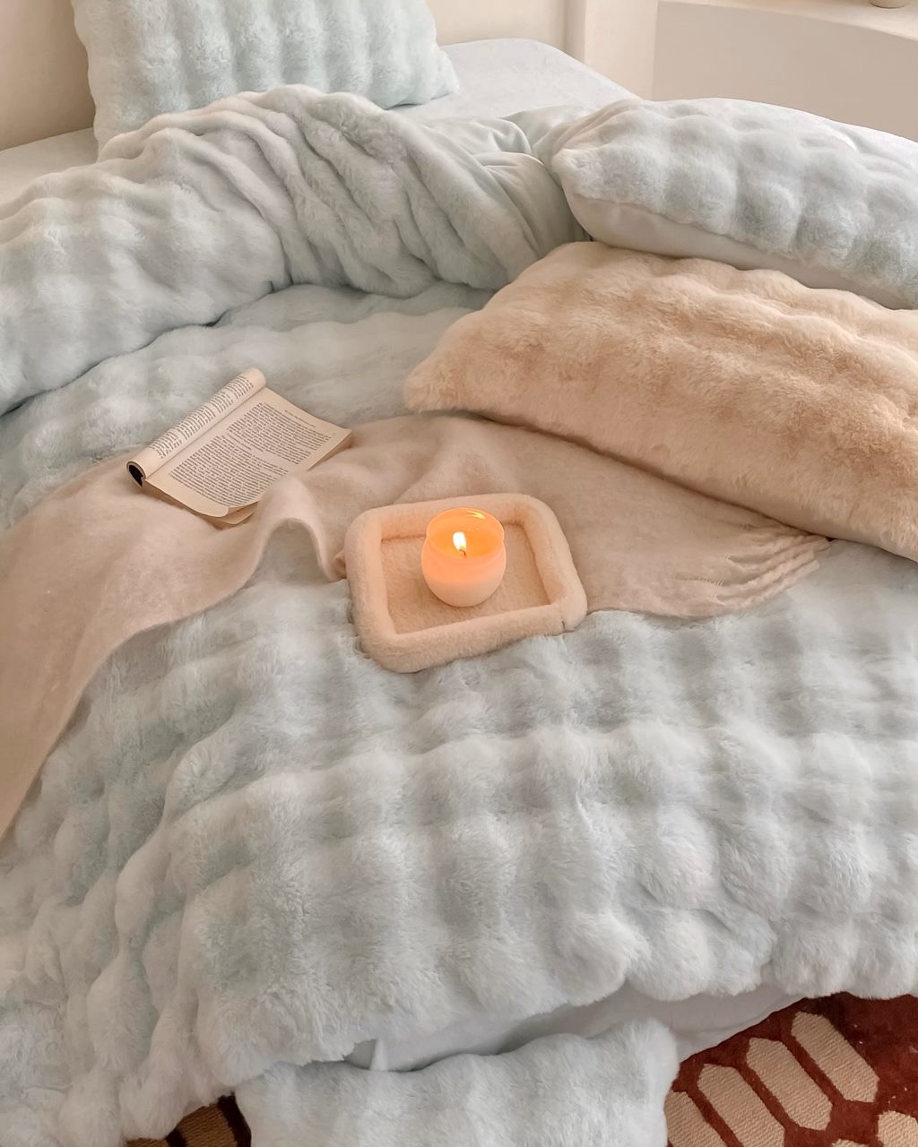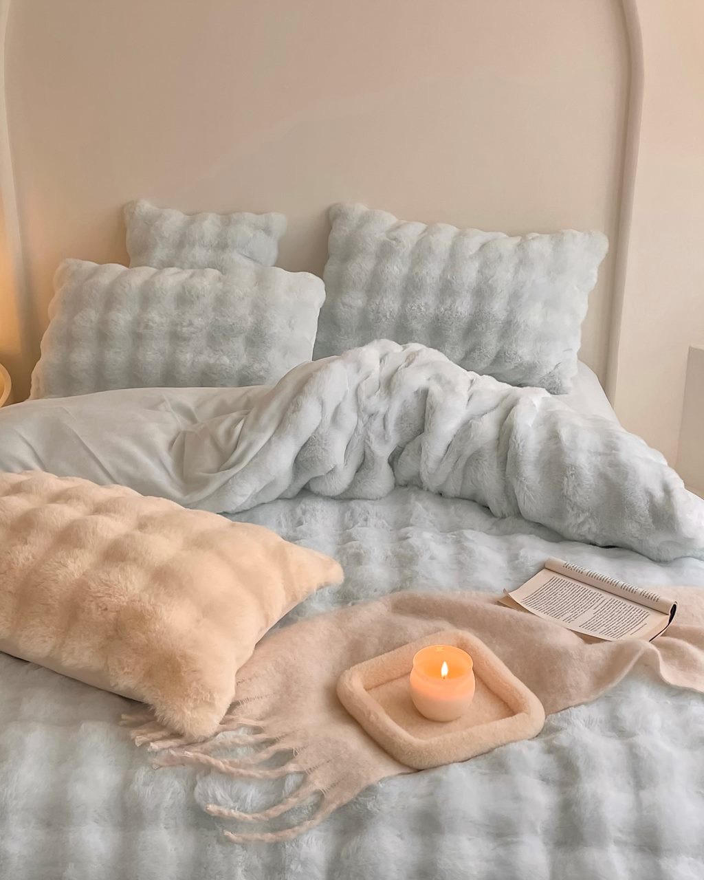 Lenjerie de Pat Dublu din Blanita Artificiala de Iepure – Rasfatul Suprem in Fiecare Noapte!Imagineaza-ti cum te scufunzi intr-un pat moale, pufos, calduros… O senzatie atat de placuta incat parca te imbratiseaza o blanita fina de iepure. Asta iti ofera lenjeria noastra de pat dublu din blanita artificiala premium – lux, confort si un somn linistit, noapte de noapte! ✔ Ce face aceasta lenjerie atat de speciala?● Blanita artificiala identica cu cea naturala – Textura ultra-fina, recreat