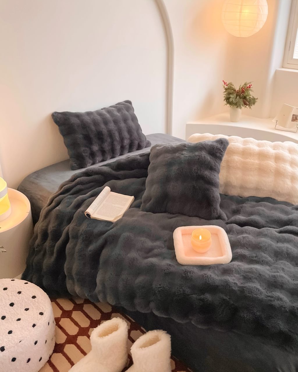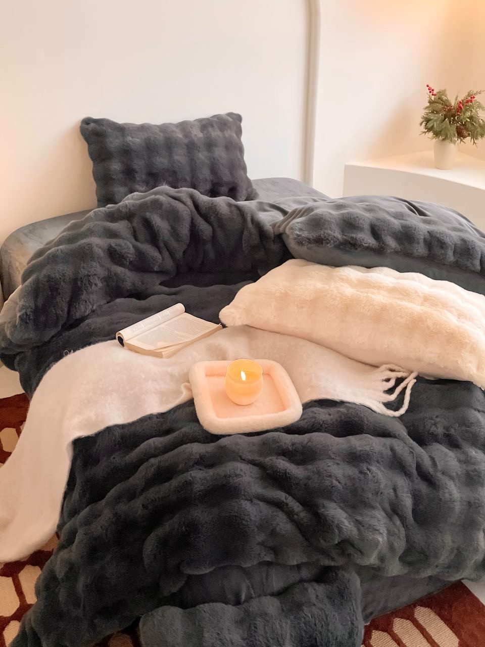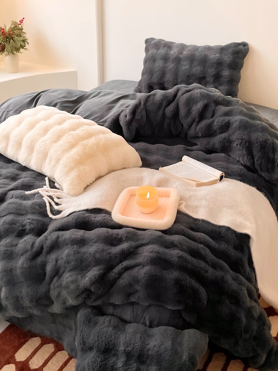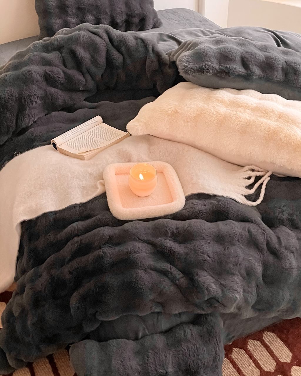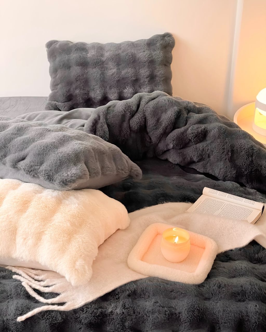 Lenjerie de Pat Dublu din Blanita Artificiala de Iepure – Rasfatul Suprem in Fiecare Noapte!Imagineaza-ti cum te scufunzi intr-un pat moale, pufos, calduros… O senzatie atat de placuta incat parca te imbratiseaza o blanita fina de iepure. Asta iti ofera lenjeria noastra de pat dublu din blanita artificiala premium – lux, confort si un somn linistit, noapte de noapte! ✔ Ce face aceasta lenjerie atat de speciala?● Blanita artificiala identica cu cea naturala – Textura ultra-fina, recreat