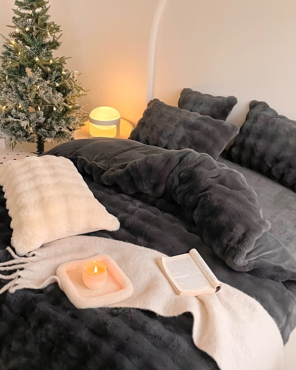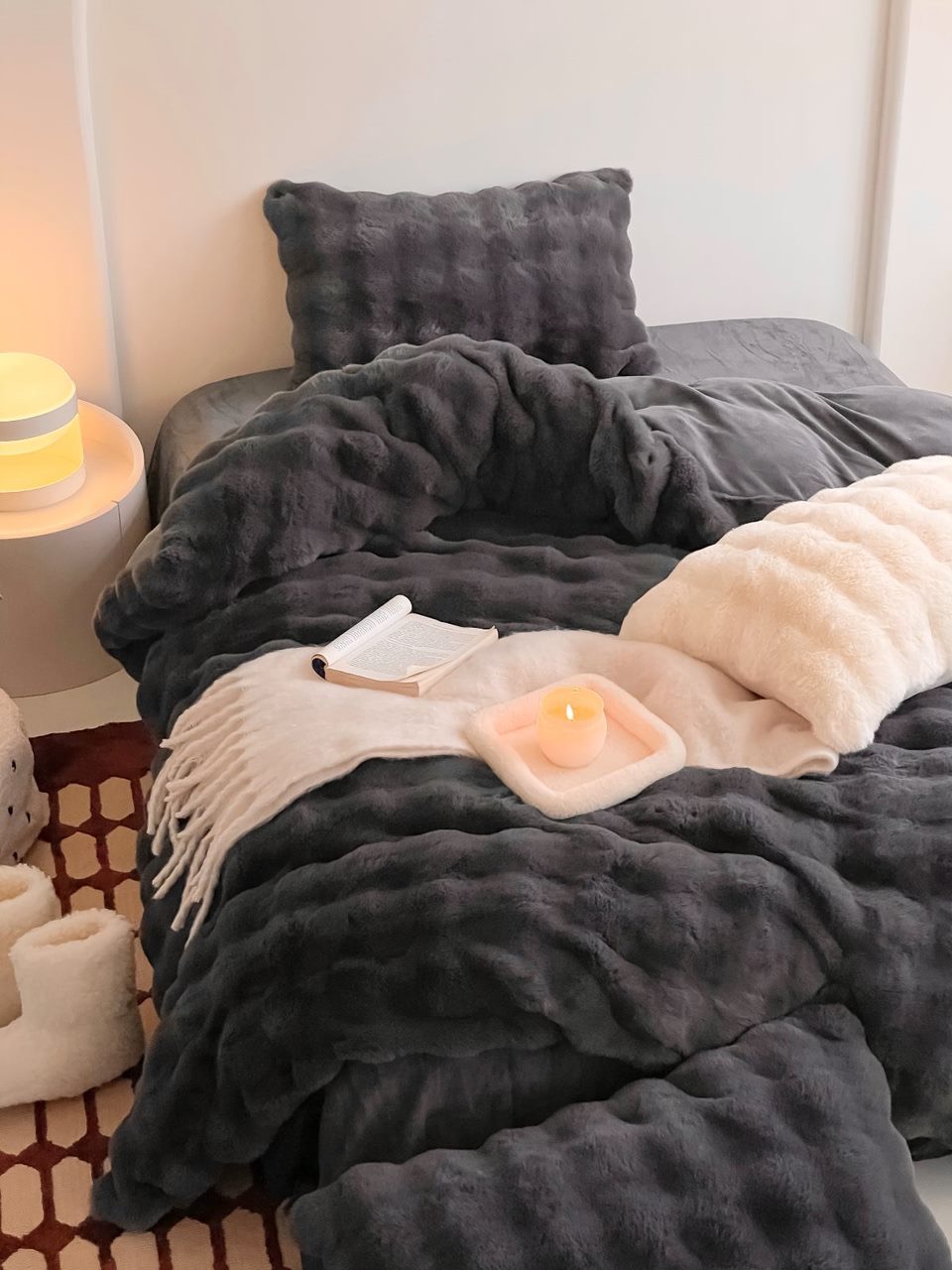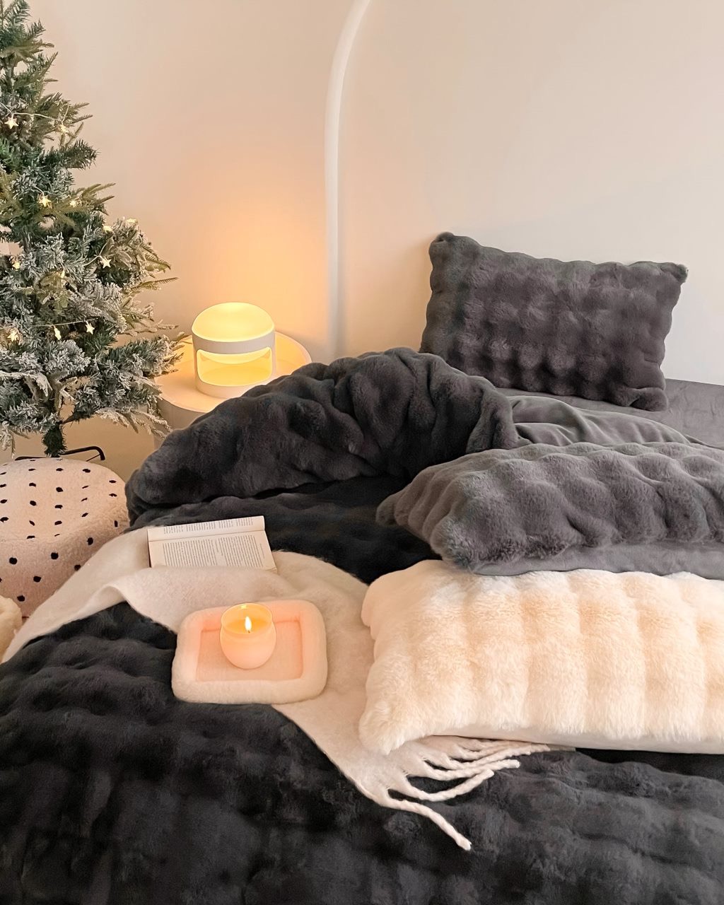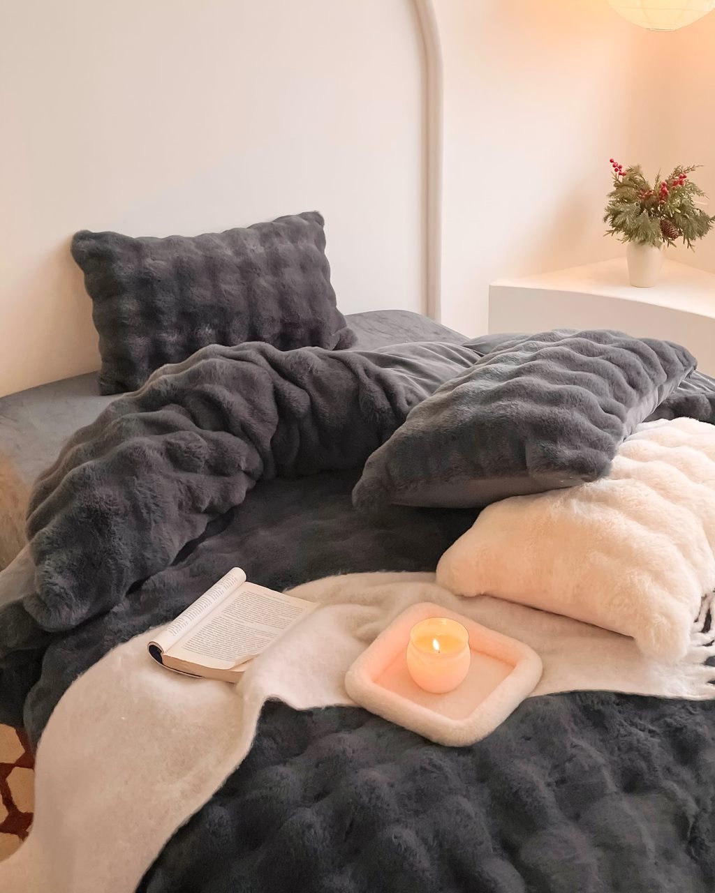 Lenjerie de Pat Dublu din Blanita Artificiala de Iepure – Rasfatul Suprem in Fiecare Noapte!Imagineaza-ti cum te scufunzi intr-un pat moale, pufos, calduros… O senzatie atat de placuta incat parca te imbratiseaza o blanita fina de iepure. Asta iti ofera lenjeria noastra de pat dublu din blanita artificiala premium – lux, confort si un somn linistit, noapte de noapte! ✔ Ce face aceasta lenjerie atat de speciala?● Blanita artificiala identica cu cea naturala – Textura ultra-fina, recreat